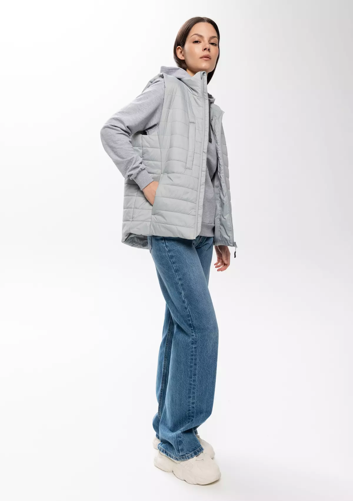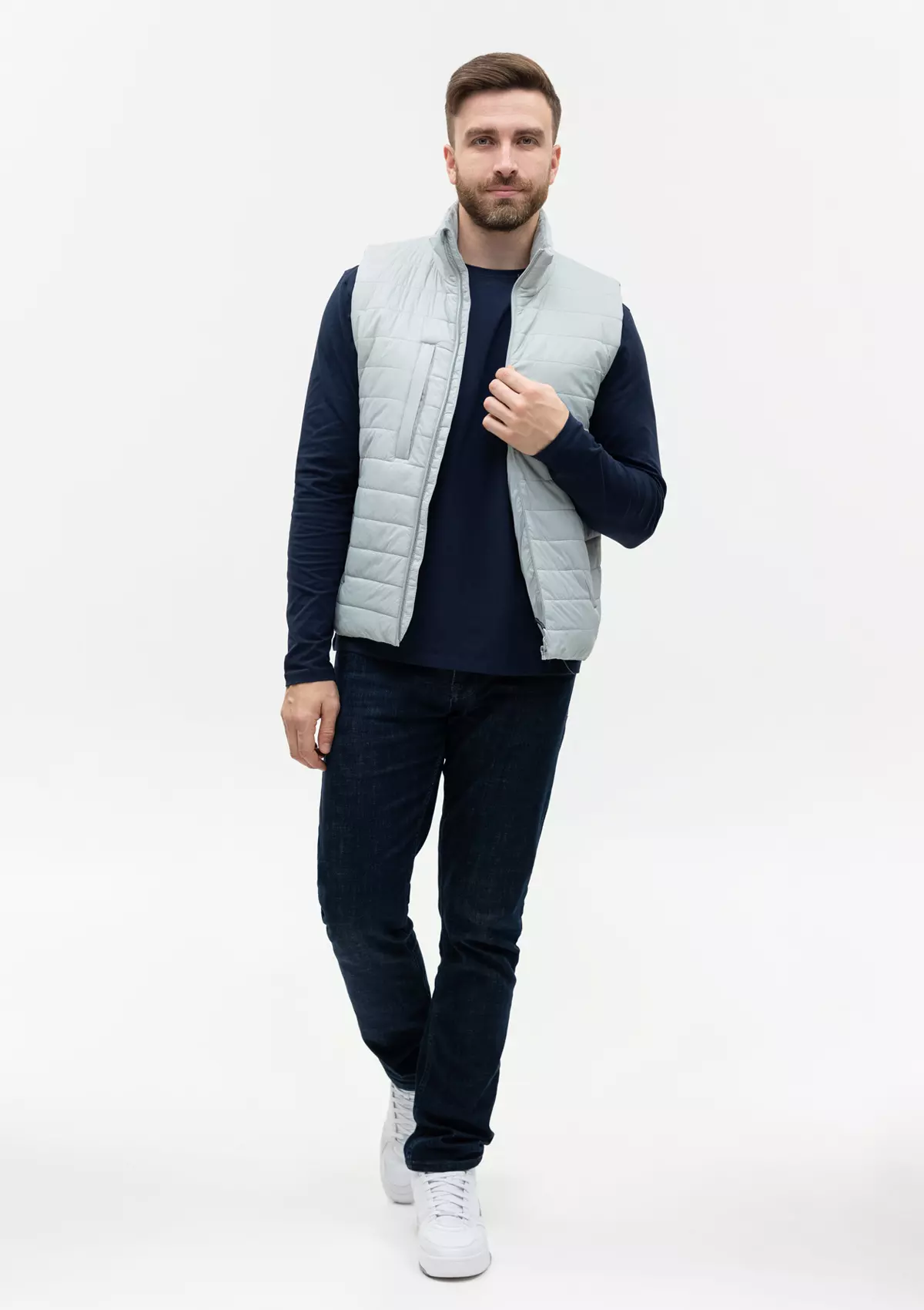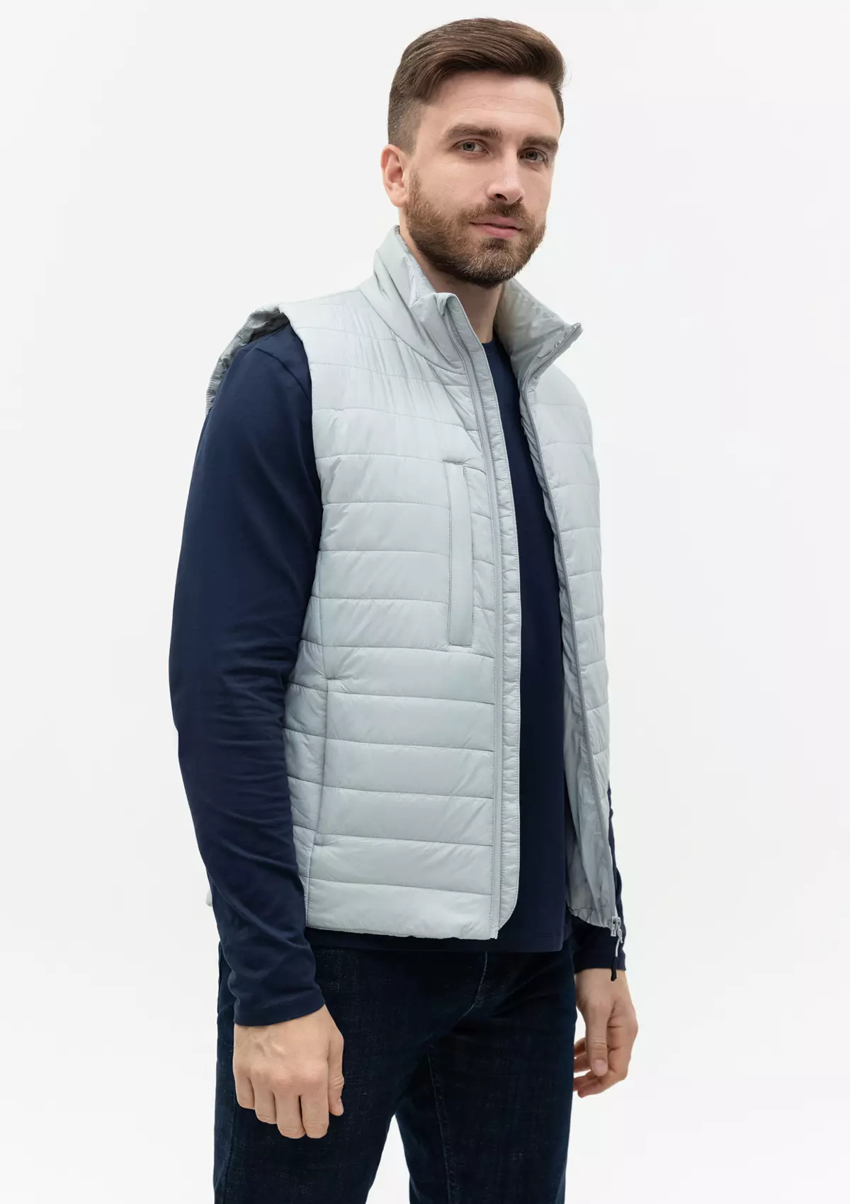 Ультралегкий жилет прямого силуэта с горизонтальной стежкой, воротником-стойкой, функциональным карманом по правой полочке, прорезным карманом и застежкой на молнию с внутренней ветрозащитной планкой. В комплекте прилагается сумка-чехол __amp__amp;#40;технологии нанесения: шелкотрансфер и DTF-печать__amp__amp;#41;.