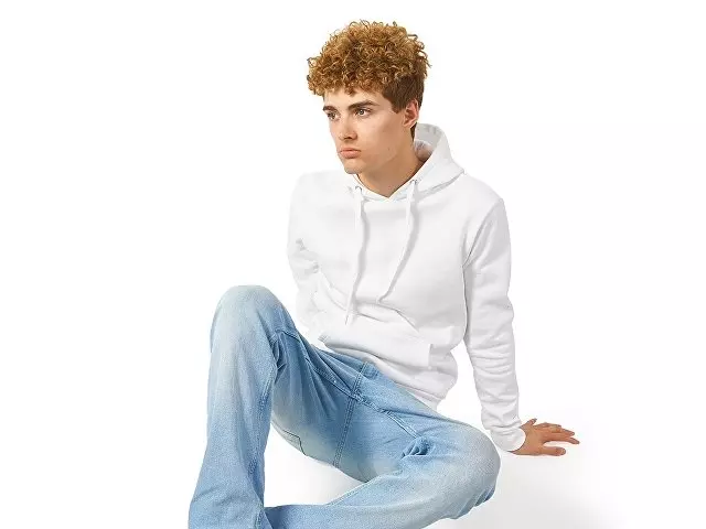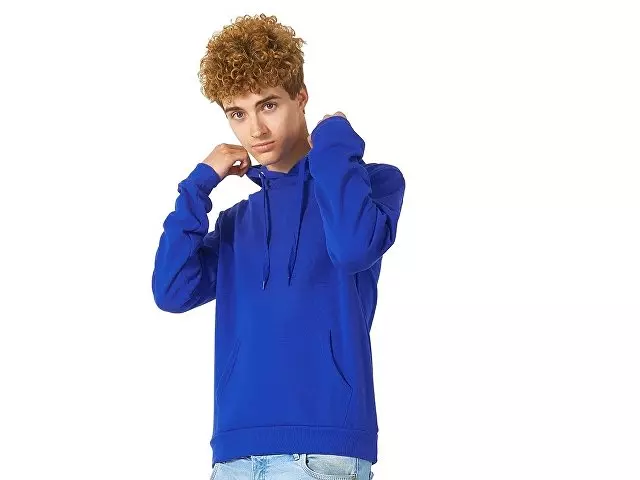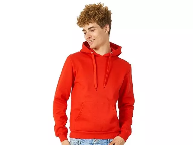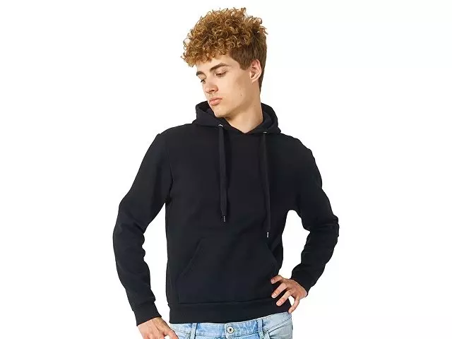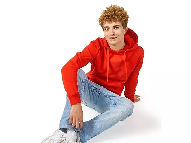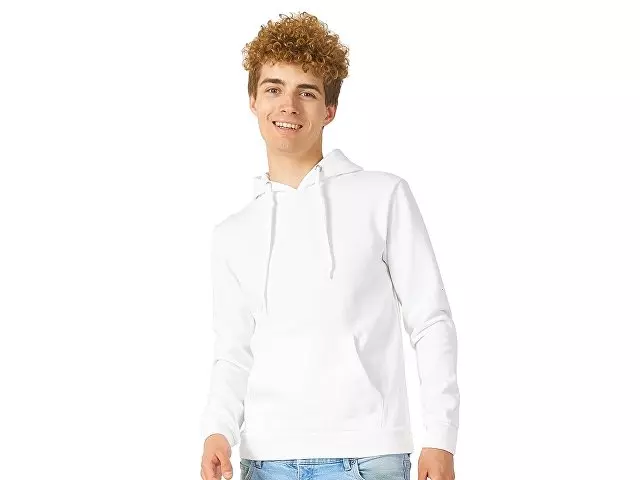 Толстовка с капюшоном (худи) из плотного футера с мягким начесом, с небольшим добавлением полиэстера. Удобная и практичная модель, подходит для прогулок по городу, активного отдыха, путешествий. • Прямой силуэт. • Капюшон с подкладкой в цвет основного материала, металлическими люверсами и плоским шнурком с наконечниками. • Удобный карман-кенгуру. • Долго сохраняет форму и не мнется благодаря небольшому содержанию полиэстера. • Гигроскопичное волокно, обладает хорошими гигиеническими свойствами. • Низ толстовки, рукавов и горловины обработаны рибом (резинкой) 1x1.