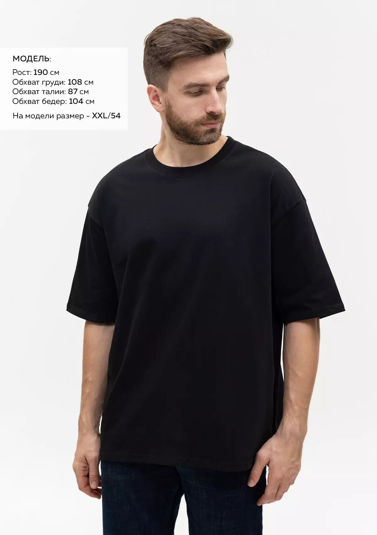 Универсальная футболка силуэта-oversize с округлым воротом и спущенной линией плеча.