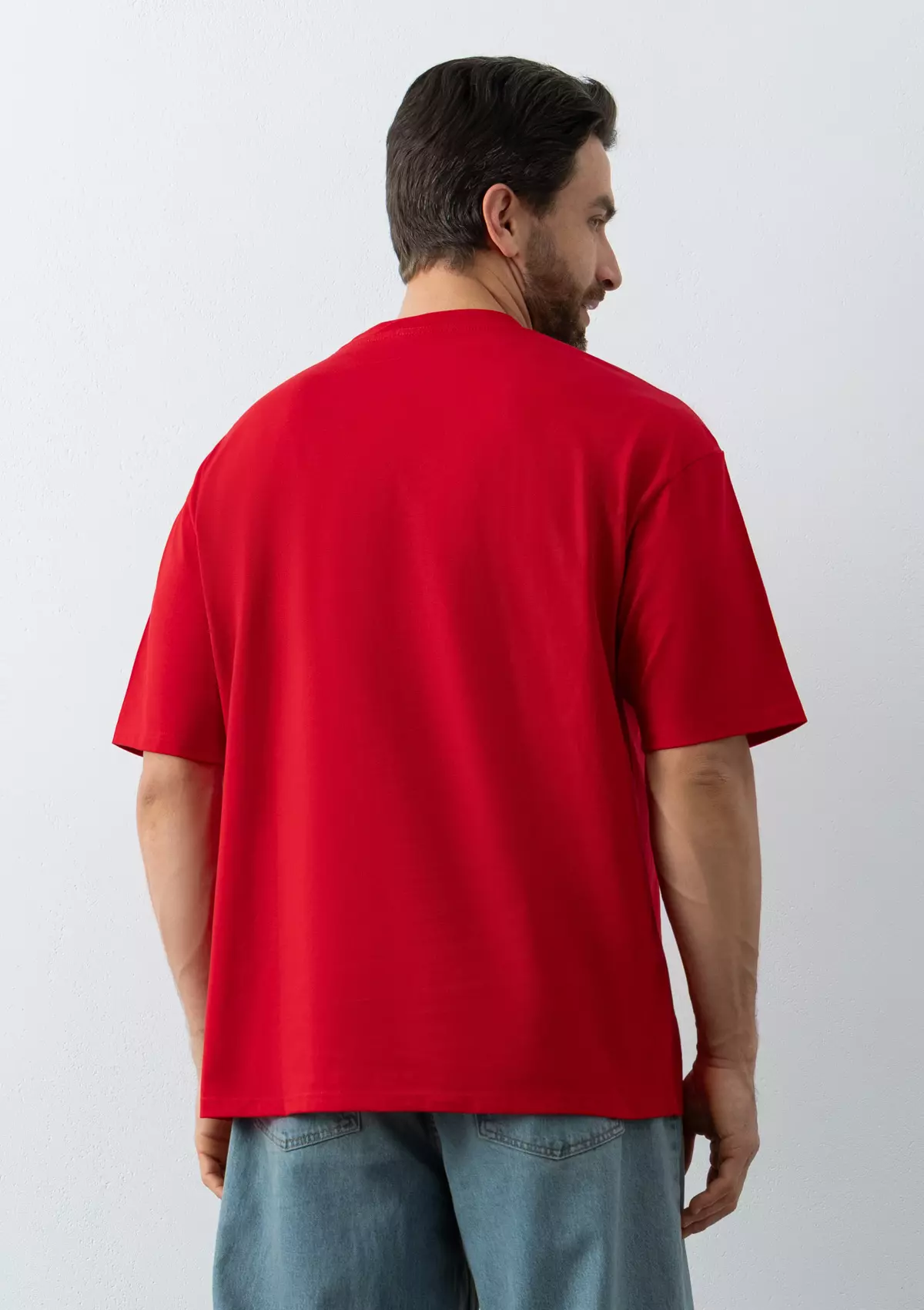 Универсальная футболка силуэта-оверсайз с округлым воротом и спущенной линией плеча.