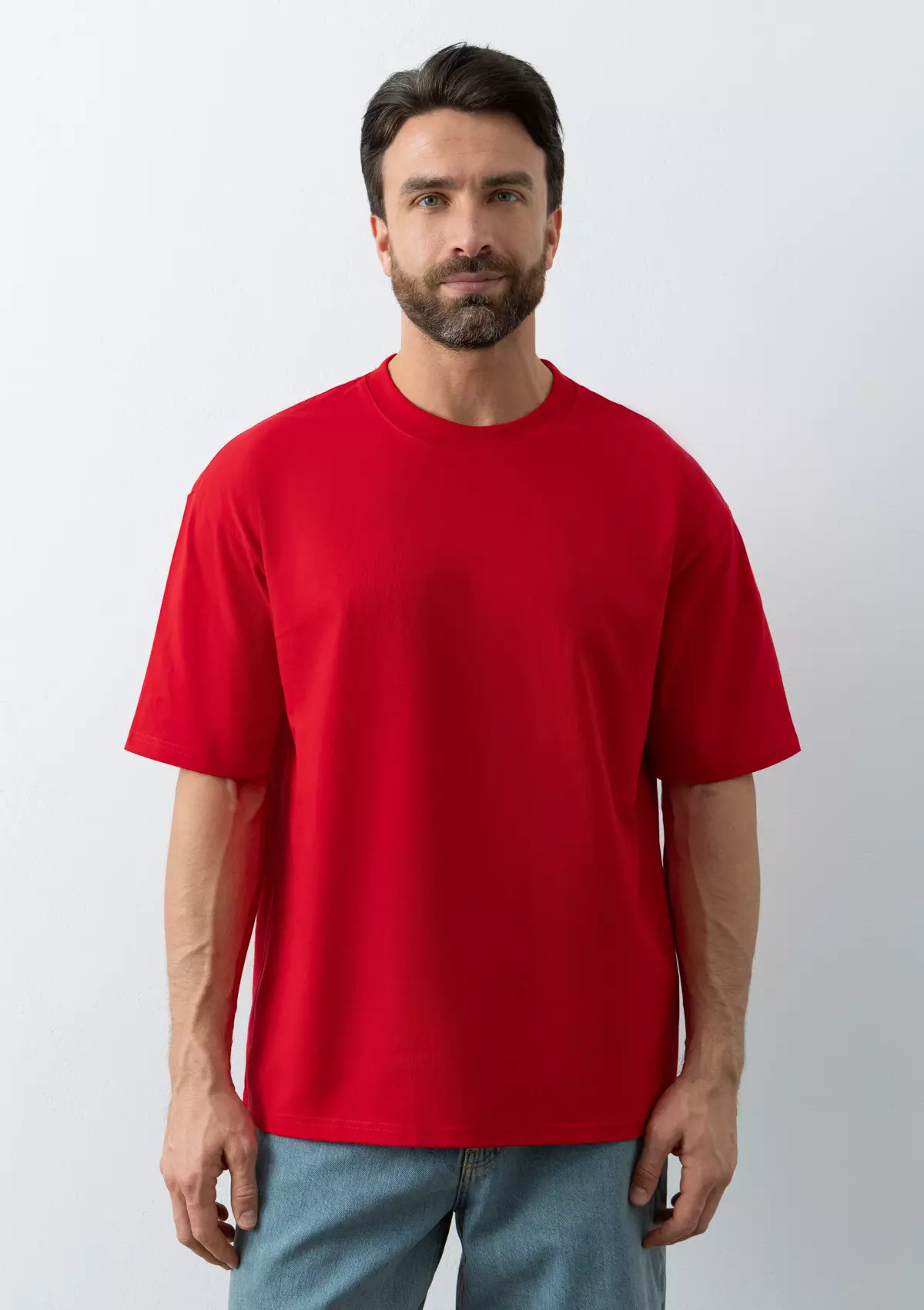 Универсальная футболка силуэта-оверсайз с округлым воротом и спущенной линией плеча.