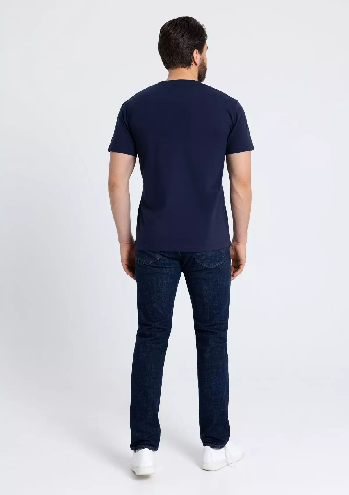 Мужская футболка прямого силуэта с округлым воротом и втачным рукавом.