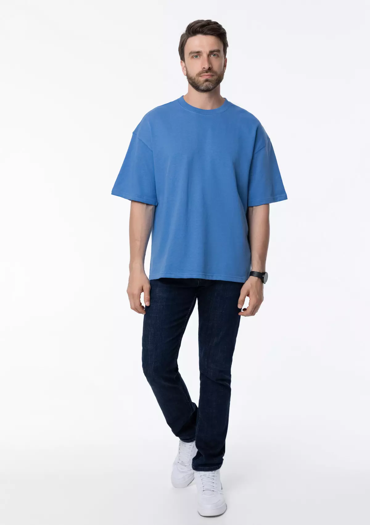 Футболка свободного кроя с округлым воротом и спущенной линией плеча. Шов горловины спинки усилен киперной лентой в тон основному цвету. Универсальная модель идеально впишется как в мужской, так и в женский гардероб.