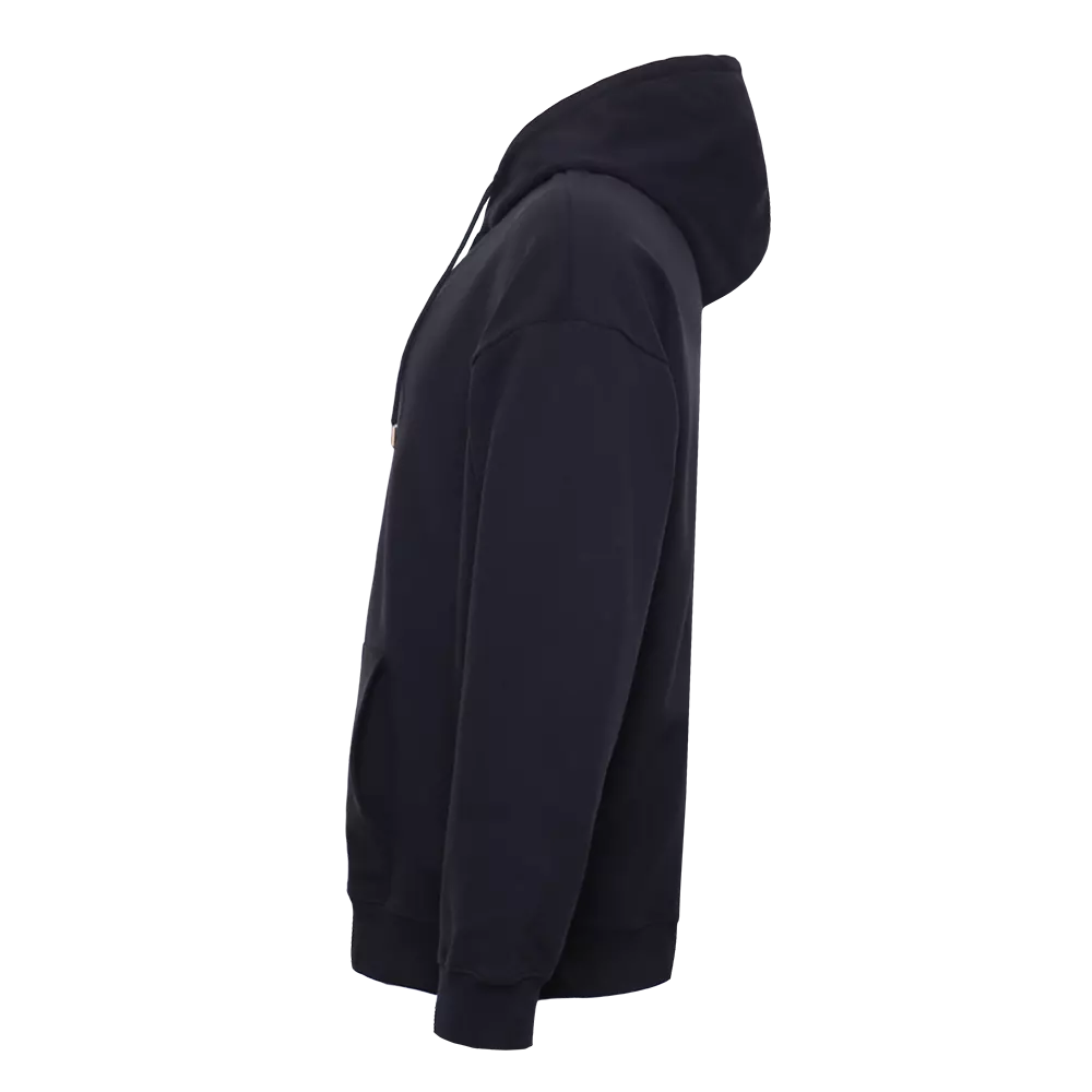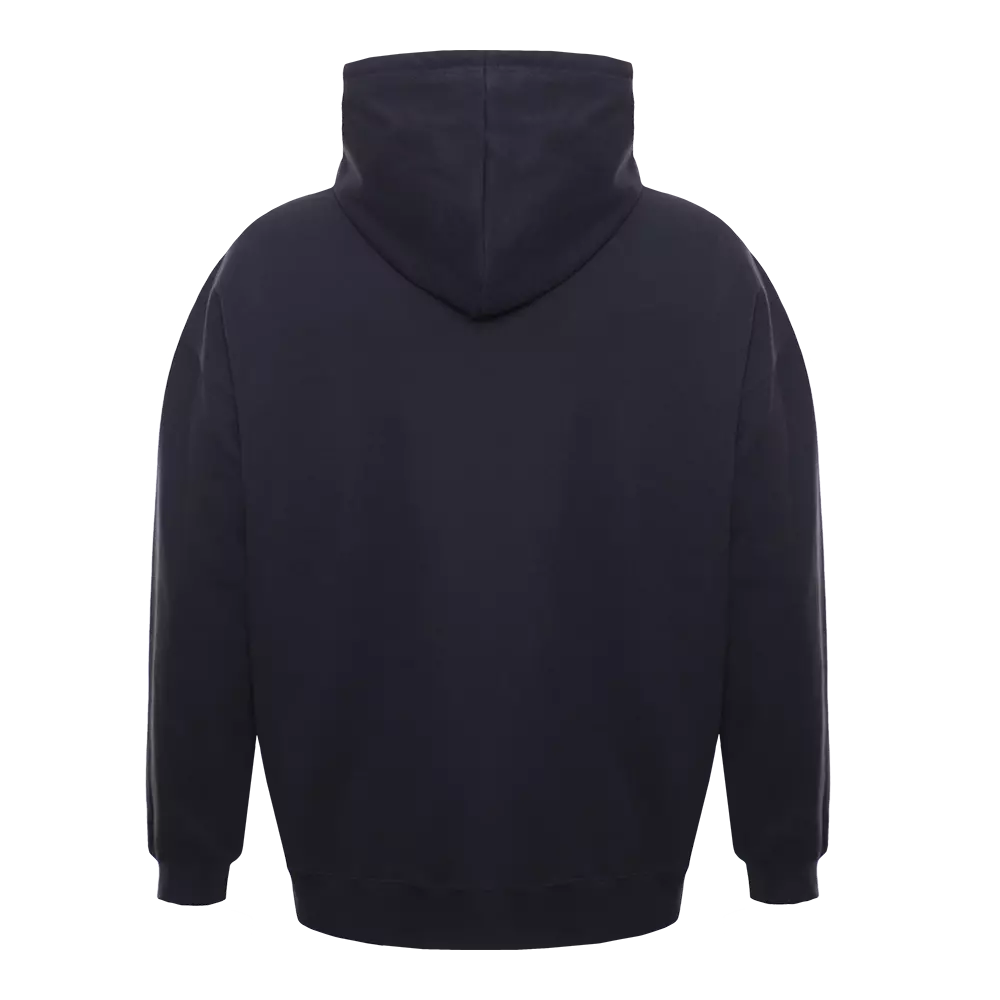 Толстовка силуэта oversize с капюшоном комфортной глубины, спущенной линией плеча и глубоким карманом. Крой дополнен акцентной молнией, а горловина и спинка модели укреплены киперной тесьмой.