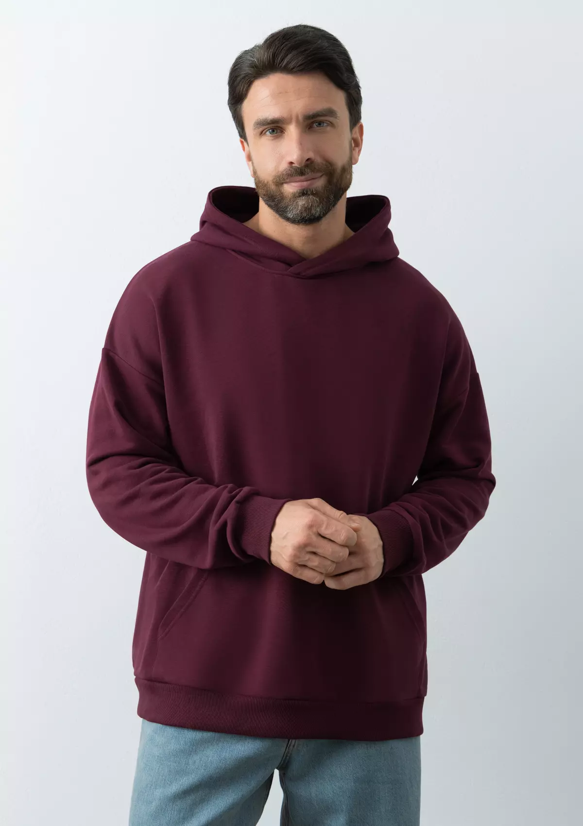 Универсальная толстовка свободного силуэта с капюшоном комфортной глубины, спущенной линией плеча и глубоким карманом-кенгуру. Манжет и низ изделия оформлены широкой эластичной резинкой.