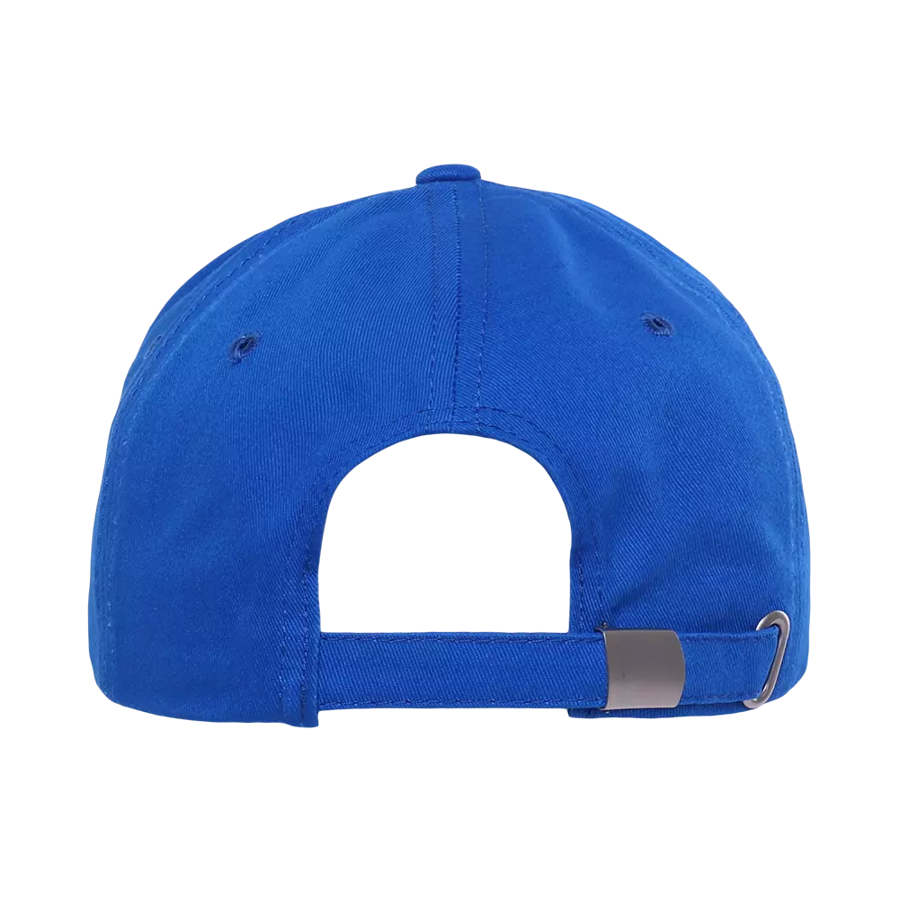 Бейсболка-шестиклинка с классическим изогнутым козырьком и застежкой на ленту с металлическим замком в тон основному цвету изделия.