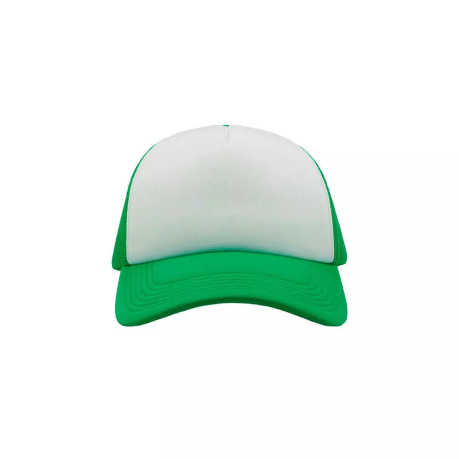 Бейсболка "RAPPER", 5 клиньев, пластиковая застежка, зеленый с белым, 100% п/э, плотность 80 г/м2