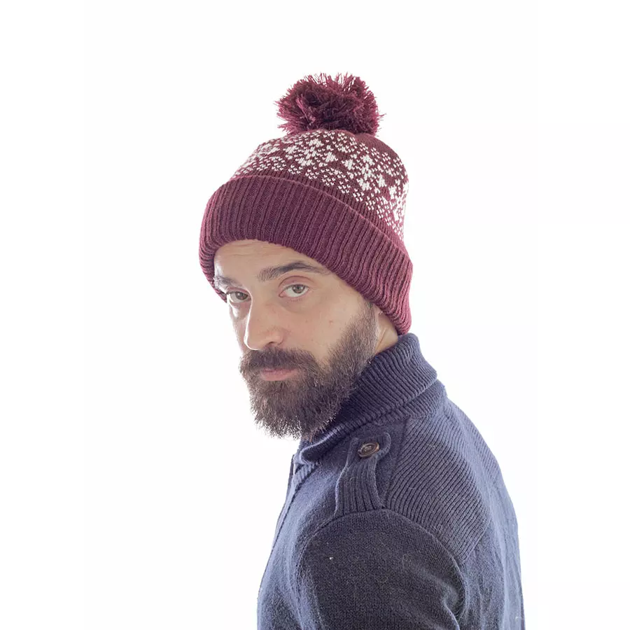 Шапка вязаная с снежинками и помпоном "FLAKE"_бордо, 100% акрил