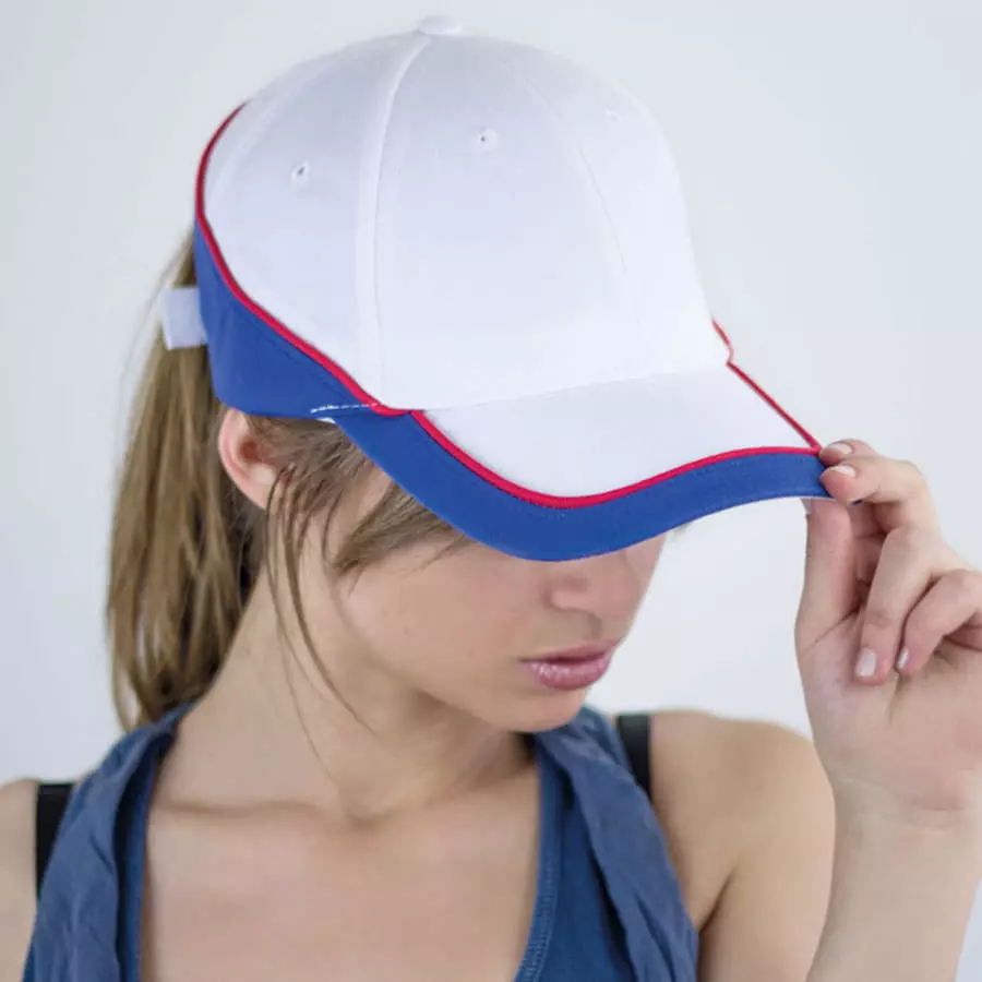 Бейсболка "Racing", красный/темно-синий, 94% полиэстер 6% вискоза,180 г/м2