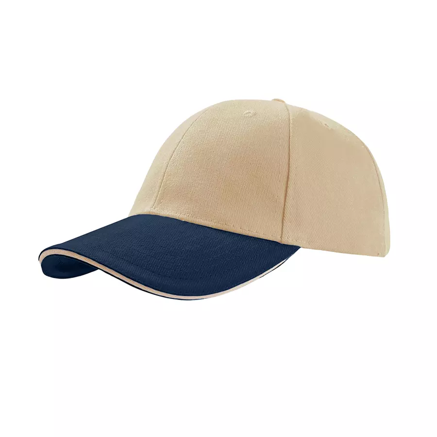 Бейсболка "LIBERTY SANDWICH",6 клиньев,сэндвич,металл.застежка,нат. бел. с синим,100% хлопок,250г/м2