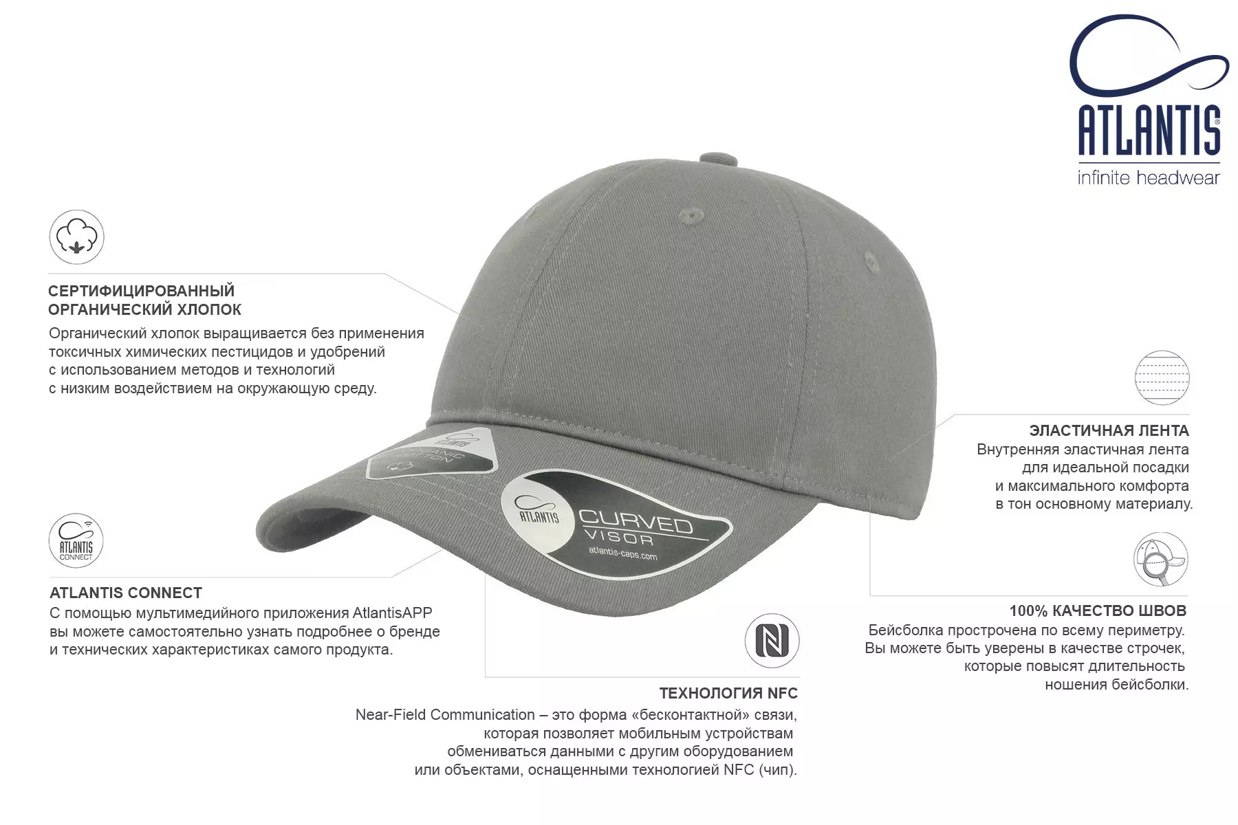 Бейсболка "GREEN CAP", 6 клиньев, метал. застежка, белый, 100% органич. хлопок, плотность 265 г/м2