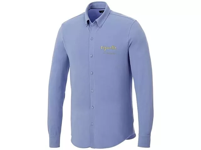Мужская рубашка Bigelow из пике с длинным рукавом. Воротник из ткани изделия. Стрейтч-ткань. Регулируемый манжет на одной пуговице. Воротник на пуговицах. Атласная окантовка внутренней части горловины. Гравированные пуговицы в цвет изделия. Тканая метка. Двойное трикотажное пике, 95% хлопок и 5% эластан. 200 г/м².