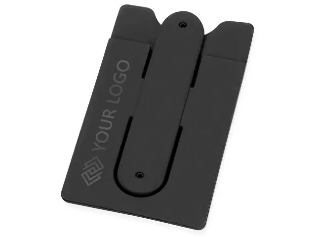 Чехол для визиток и кредитных карт с функцией подставки. За счет клейкой основы прикрепляется к обратной стороне телефона или любой другой плоской поверхности.