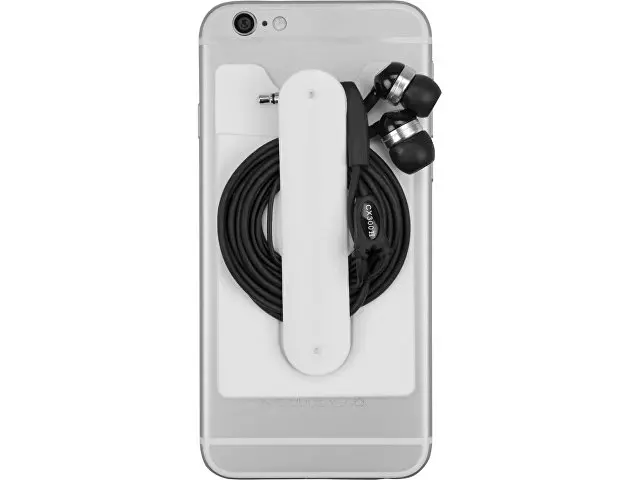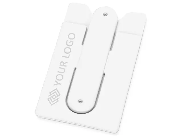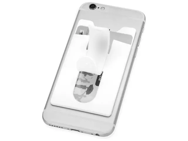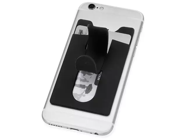 Чехол для визиток и кредитных карт с функцией подставки. За счет клейкой основы прикрепляется к обратной стороне телефона или любой другой плоской поверхности.