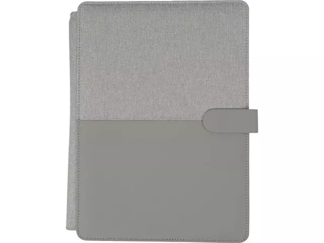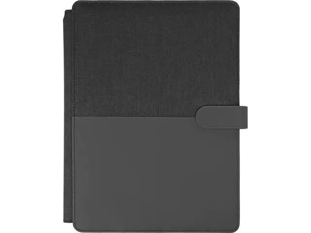 Стильная папка для документов формата А4 с комбинированной обложкой из текстиля и искусственной кожи. Удобный внутренний органайзер имеет карман на застёжке для планшета, блокнот для записей с линованной бумагой.