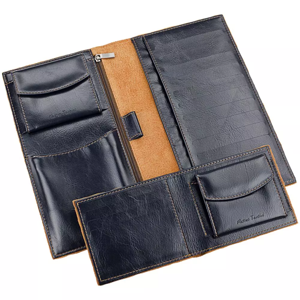 Те, кто часто путешествует, знают, что в пути и на месте отдыха нужны разные вещи: в дороге — паспорт и билеты, во время отдыха — местные деньги и банковские карты. Поэтому в дорожном наборе Palermo два предмета: органайзер и портмоне. Органайзером удобно пользоваться в поездке, а во время отдыха достаточно одного портмоне.О пляжах Палермо напоминает сочетание глубокого синего и теплого песочного цветов, гладкость кожи и приятная шероховатость замши. Еще один отличительный знак изделий Palermo — перфорация на обратной стороне изделия.Palermo — безупречный подарок для самых искушенных.Изделия линейки Palermo изготовлены из гладкой кожи глубокого синего цвета с контрастной отделкой из замши. Оформленные в едином стиле, они легко собираются в подарочные наборы.Все изделия линейки Palermo.Органайзер: отделения для банкнот, дорожных билетов и пластиковых карт, карманы для монет и sim-карт. Портмоне: отделения для банкнот и пластиковых карт, карман для монет. Набор поставляется в чехле и подарочной коробке.