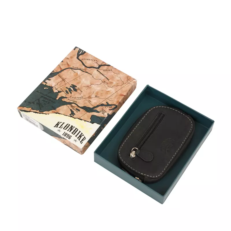 Ключница KLONDIKE Yukon, натуральная кожа в черном цвете, 11,5 х 2 х 7,5 см
