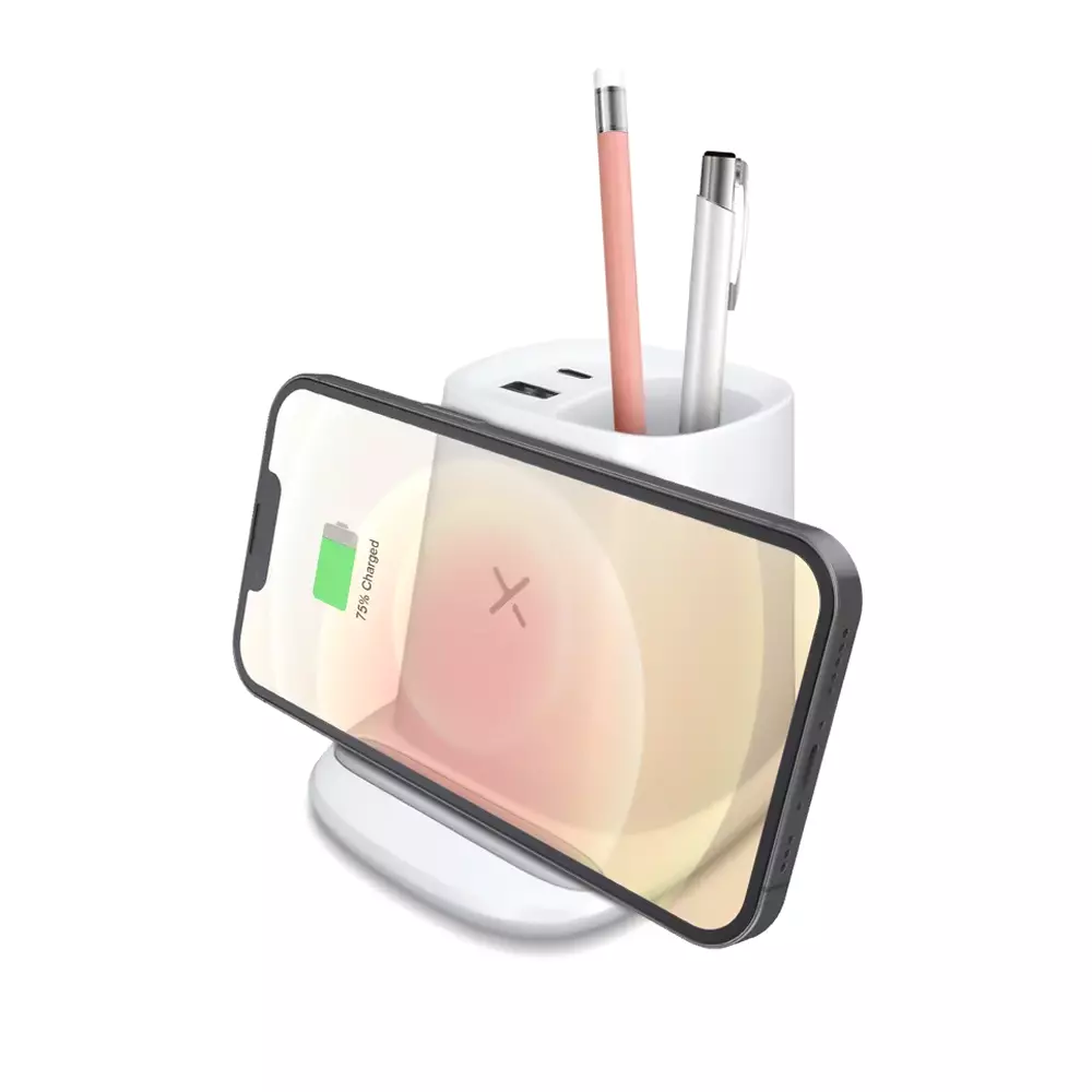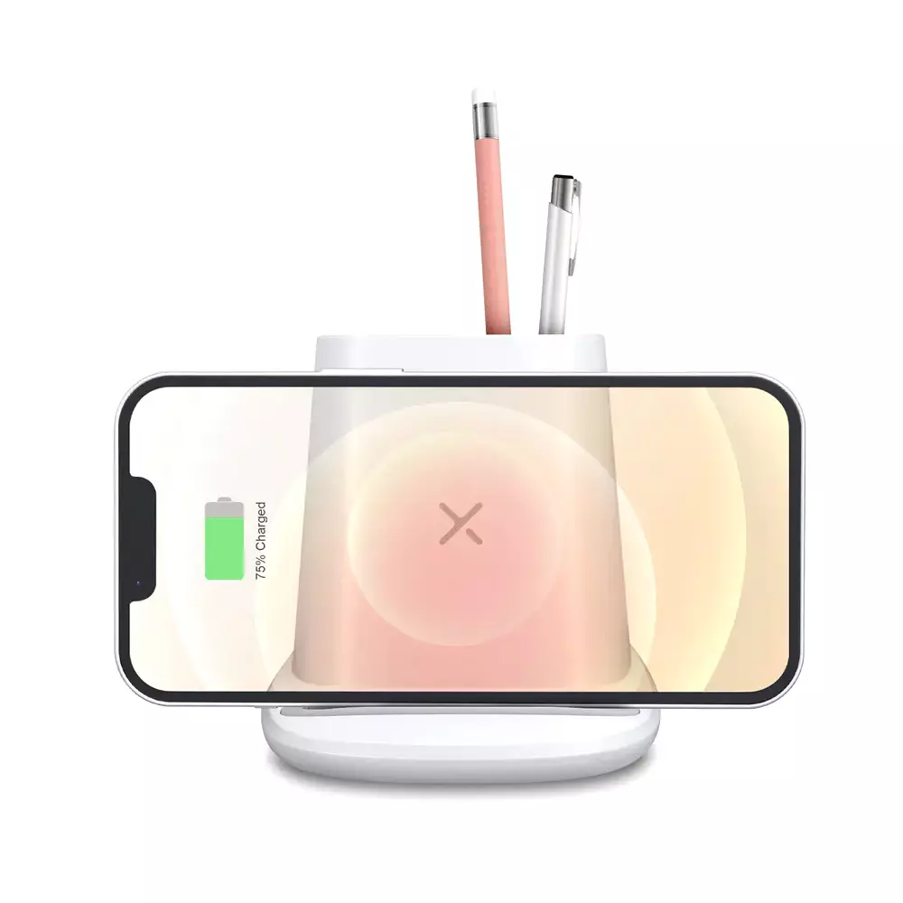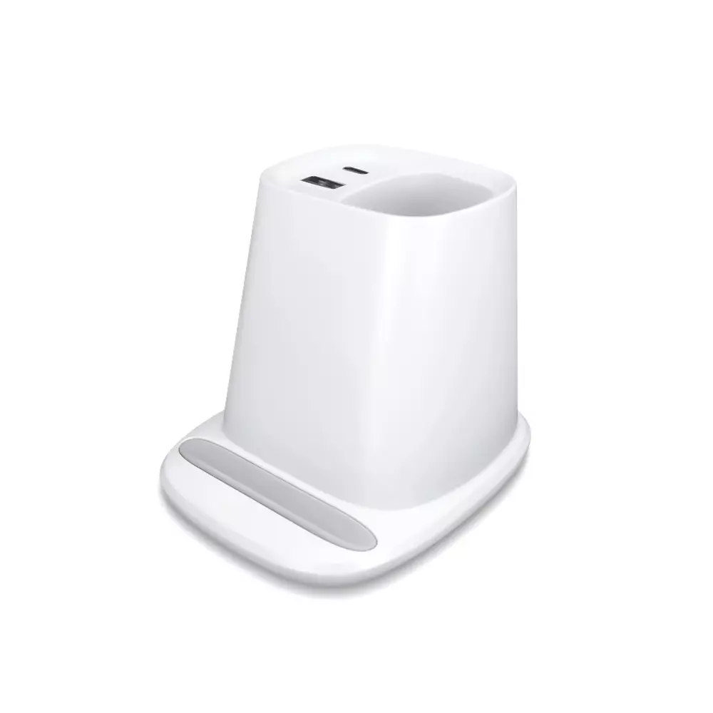 Карандашница "Smart Stand" с беспроводным зарядным устройством, вентилятором и лампой (2USB разъёма)