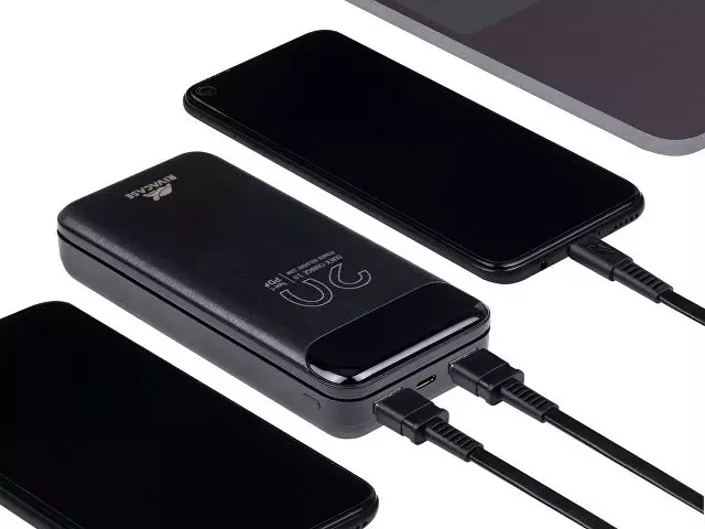 RIVACASE Литий-полимерный внешний аккумулятор с поддержкой QC 3.0 и PD и цифровым дисплеем • Литий-полимерный внешний аккумулятор емкостью 20000 мАч с поддержкий QC 3.0 и PD20W. • Быстрая зарядка Iphone • Поддержка режима быстрой зарядки Quick Charge (QC 3.0) и Power Delivery 20W (PD) • Поддержка режимов быстрой зарядки Huawei FCP & Samsung AFC • Защита от перегрузок, короткого замыкания, чрезмерного заряда и разряда. • Цифровой дисплей показывает уровень заряда в процентах Преимущества: Быстрая зарядка Iphone Поддержка режима Quick Charge (QC 3.0) и Power Delivery (PD 20W) . Поддержка режимов быстрой зарядки Huawei FCP & Samsung AFC Поддержка Huawei SCP 22,5W. Наличие дополнительного входа/выхода Type-C, поддерживающего режим Power Delivery Кабель USB- Type-C в комплекте Функция сквозного заряда: Можно одновременно заряжать внешний аккумулятор и подключенное к нему устройство. Емкости достаточно для 5 зарядок среднего смартфона. Время перезарядки внешнего аккумулятора : 6 часов (при использовании QC/PD зарядки) Спецификация: Литий-полимерная батарея:: 3.7В 20000 мАч 74В*ч • Bxoд: Micro USB 5B 2A / 9B 2A / 12B 1,5A (поддерживает QC 3.0) Type-C 5B 3A / 9B 2A / 12B 1,5A (поддерживает QC 3.0/PD 3.0) • Bыxoд: USB1 4,5 В 5 A/5 В 4,5 A/ 9 В 2 А / 12 В 1,5 А (поддерживает QC 3.0) USB2 4,5 В 5 A/5 В 4,5 A/ / 9 В 2 А / 12 В 1,5 А (поддерживает QC 3.0) Type-C 5 В 3 A / 9 В 2,2 А / 12 В 1,5 А (поддерживает PD20W 3.0/QC3.0) Размер: 143 x 67 x 28 мм Вес: 410г.