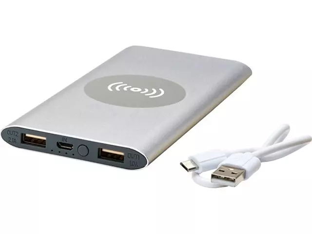 Беспроводное портативное зарядное устройство емкостью 8000 мАч с алюминиевым корпусом. Поддерживает беспроводную зарядку мощностью 5 Вт, а также имеет выход Micro USB для зарядки с помощью кабеля. Благодаря литий-полимерному аккумулятору емкостью 8000 мАч может зарядить смартфон до полного заряда несколько раз. Индикатор питания, постоянно показывающий уровень энергии. Встроенный порт Micro USB: Выход 5V/2A: 5 В/2 А. Выходная мощность беспроводной зарядки 5W. В комплект входит кабель для зарядки из TPE-пластика без ПВХ. Пластик ABS, Алюминий.