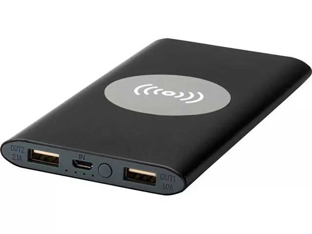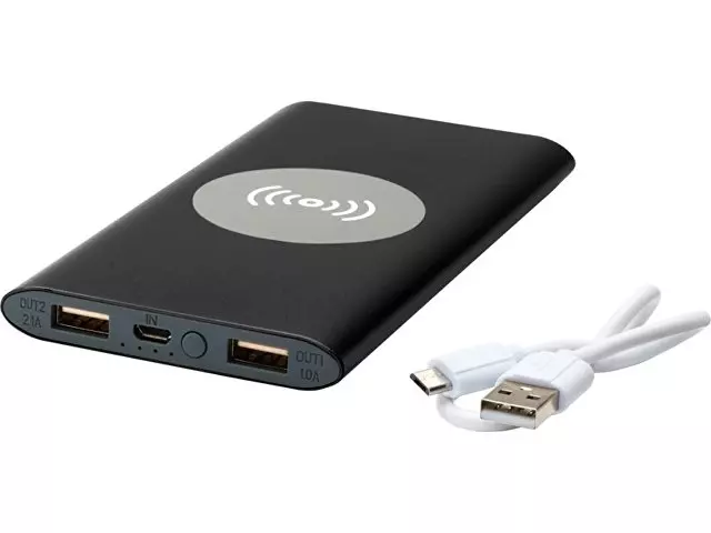 Беспроводное портативное зарядное устройство емкостью 8000 мАч с алюминиевым корпусом. Поддерживает беспроводную зарядку мощностью 5 Вт, а также имеет выход Micro USB для зарядки с помощью кабеля. Благодаря литий-полимерному аккумулятору емкостью 8000 мАч может зарядить смартфон до полного заряда несколько раз. Индикатор питания, постоянно показывающий уровень энергии. Встроенный порт Micro USB: Выход 5V/2A: 5 В/2 А. Выходная мощность беспроводной зарядки 5W. В комплект входит кабель для зарядки из TPE-пластика без ПВХ. Пластик ABS, Алюминий.