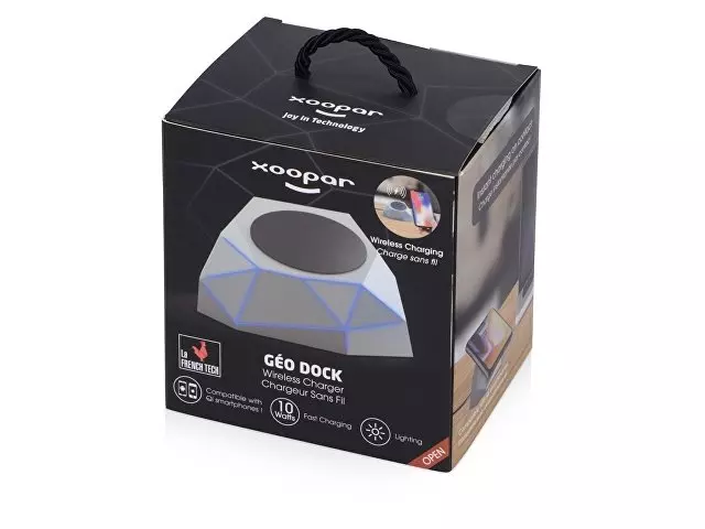 Беспроводная зарядка "Geo Dock" от бренда Xoopar это сочетание запатентованного дизайна в стиле low poly и современных технологий. Просто положите Ваш совместимый смартфон в центр с антискользящим покрытием и магия начнется. Во время зарядки активируется "дышащая" подсветка граней и области под гравировку логотипа. Станция бесппроводной зарядки "Geo Dock" также поддерживает технологию быстрой беспроводной зарядки (10W), она работает при наличии адаптера c функцией Quick Charge. "Geo dock" совместима с iPhone 8 версии и выше, Samsung Galaxy S7 и выше, а также с большинством других устройств, поддерживающих беспроводную зарядку.