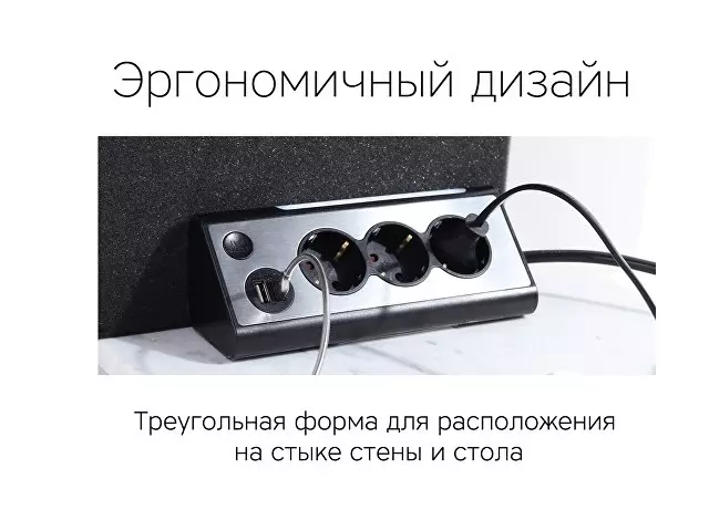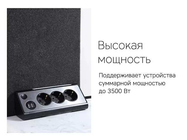 Сетевой фильтр Rombica NEO TRINITY - Black. * Три силовые штепсельные розетки. * Два USB порта. * Встроенный LED светильник. Вход- Евровилка Выходы- USB 5 В / 2.1 А, 2 шт. Евровилка 220 В / 16 А, 3 шт. Максимальная мощность, Вт3500 Длина шнура 1.5 м
