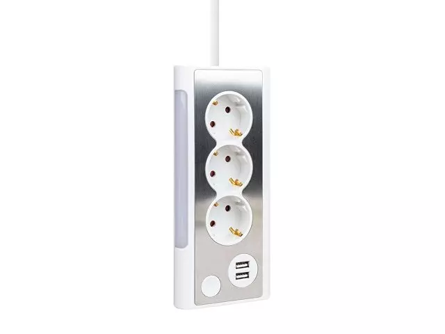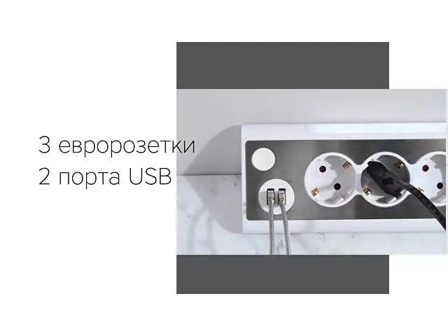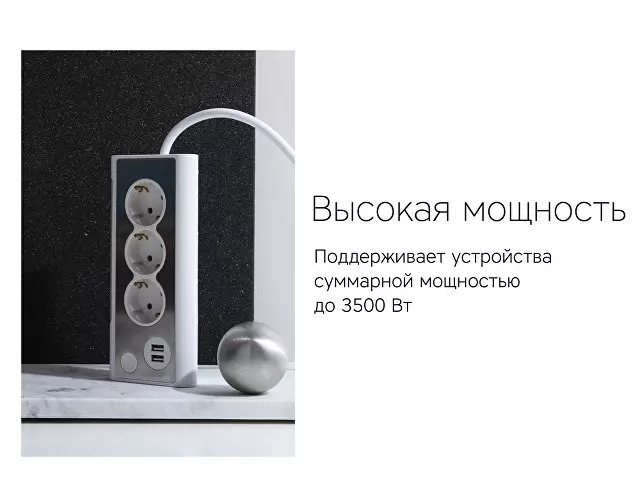Сетевой фильтр Rombica NEO TRINITY - White * Три силовые штепсельные розетки. * Два USB порта. * Встроенный LED светильник. Вход- Евровилка Выходы- USB 5 В / 2.1 А, 2 шт. Евровилка 220 В / 16 А, 3 шт. Максимальная мощность, Вт3500 Длина шнура 1.5 м