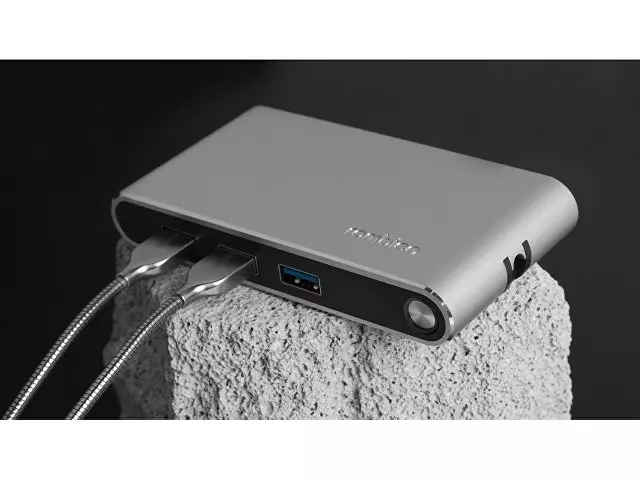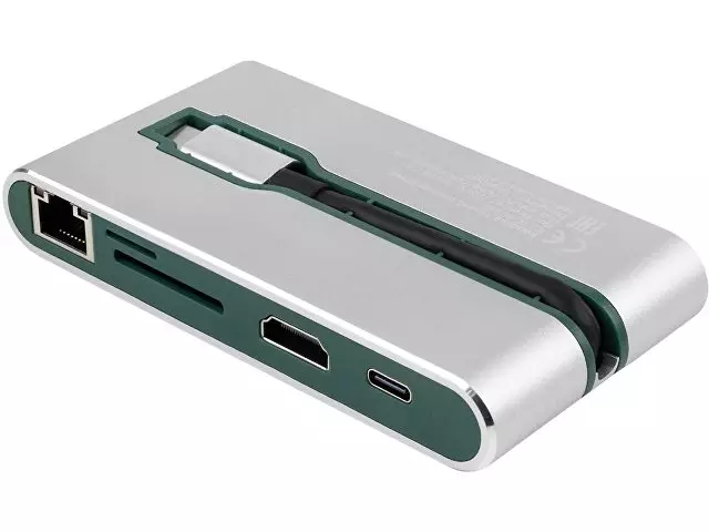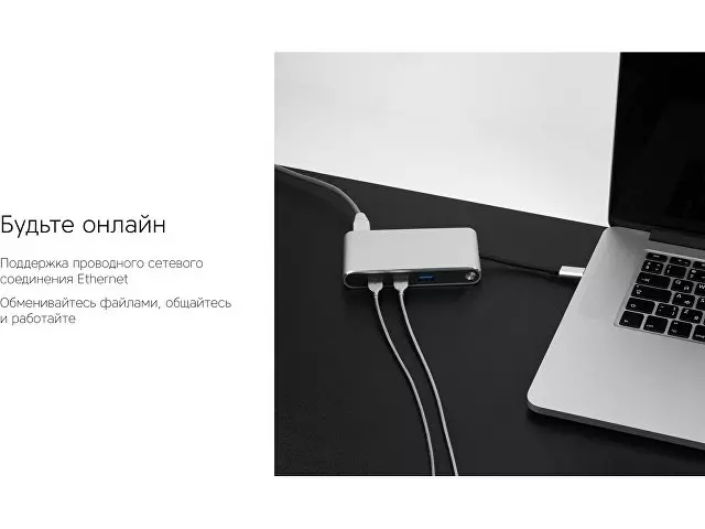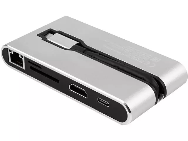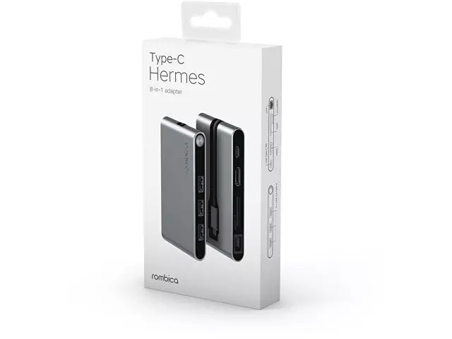 Адаптер 8-в-1 Rombica Type-C Hermes Black. • Для ноутбуков с интерфейсом USB Type-C • 3 высокоскоростных порта USB 3.0 • Видеовыход HDMI 4K, mini Display Port 4K, VGA * • Type-C Power Delivery до 87 Вт ** • Картридер для microSDXC и SDXC карт памяти • Гигабитный сетевой адаптер • Аудиопорт • Не требует дополнительного питания • Алюминиевый корпус • Удобный форм-фактор * Для работы видеовыходов требуется поддержка Alternate Mode (альтернативный режим) на Type-C порту ноутбука, к которому подключена док-станция. ** Для зарядки ноутбука через порт док-станции Type-C требуется использовать штатное зарядное устройство для ноутбука (в комплект устройства не входит). Ноутбук должен поддерживать зарядку через порт USB Type-C Female, к которому подключена док-станция.