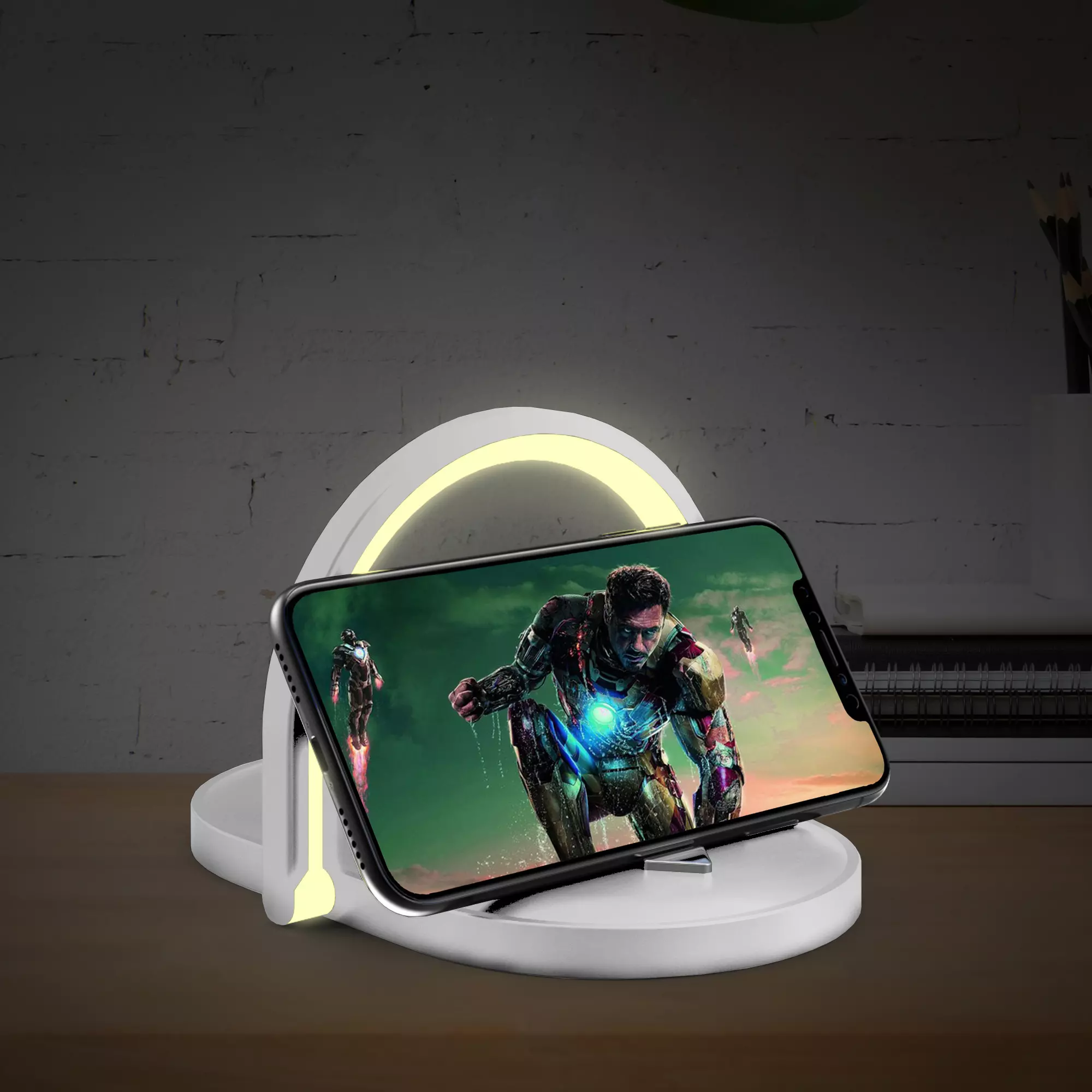 Многофункциональный гаджет: БЫСТРОЕ 15W беспроводное зарядное устройство + складная лампа-ночник + подставка для смартфона. 3 режима освещения с функцией регулировки яркости в каждом из режимов при помощи сенсорной кнопки, расположенной посередине ободка лампы. У треугольной кнопки 2 положения – она может быть «утоплена» вровень с плоскостью зарядного блока (для удобного размещения гаджетов для зарядки) или быть выше поверхности зарядного блока (использование её в качестве подставки для смартфона). Характеристики: Вход (Type-C input): DC 5V/3A, 9V/2A, 12V/1.5A (Max) Выход (Wireless output): 5W/7.5W/10W/15W Эффективность беспроводной зарядки: >75% Рабочая дистанция для передачи заряда: 8 мм (Max) Материал: ABS-пластик, полипропилен Длина кабеля USB / Type-C 100 см