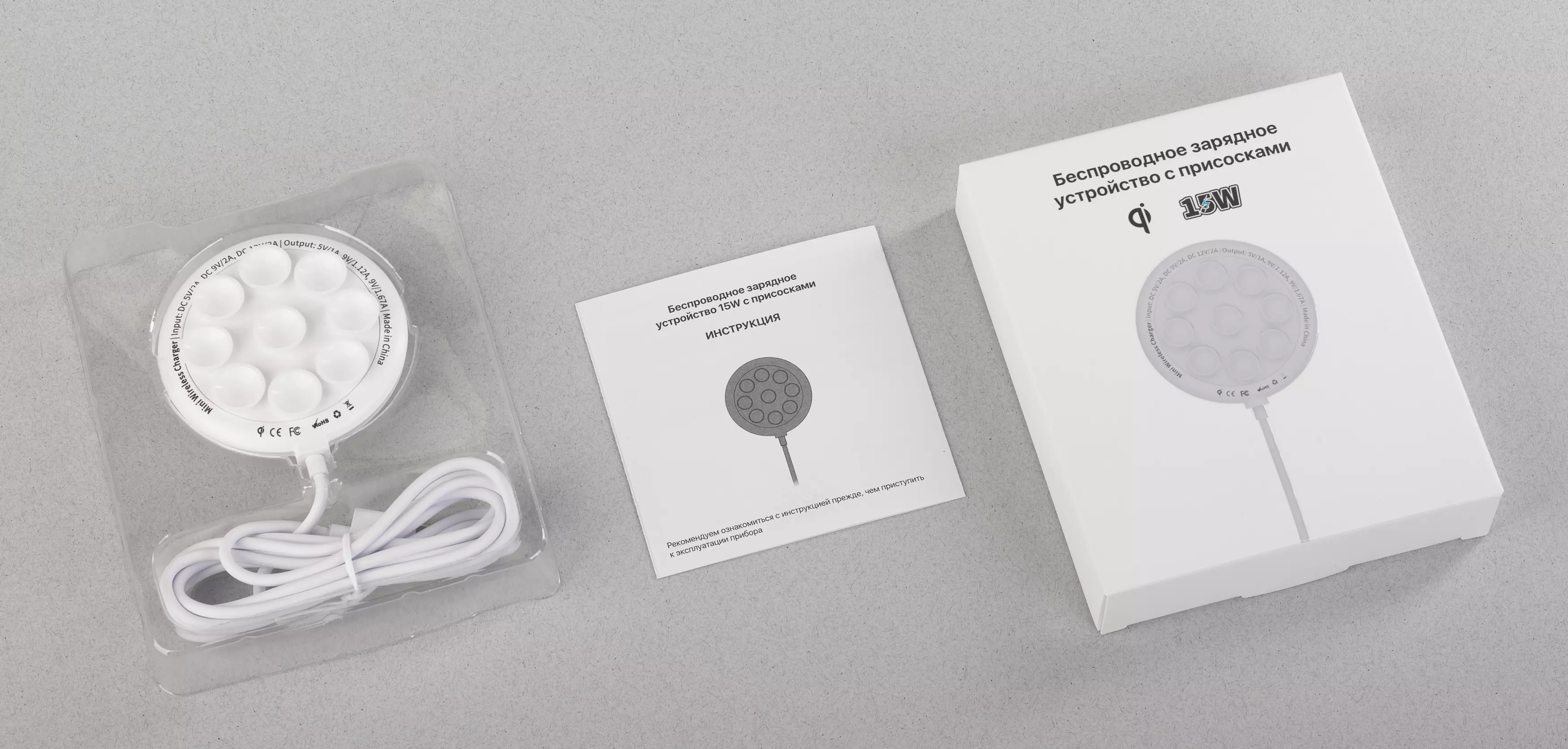 Характеристики: Вход (input): 5V/2A, 9V/1.34A, 9V/2A, 12V/2A Беспроводной интерфейс (wireless output): 5V/1A (5W), 9V/0.83A (7.5W), 9V/1.12A (10W), 9V/1.67A (15W) Длина встроенного кабеля: 1.5 м