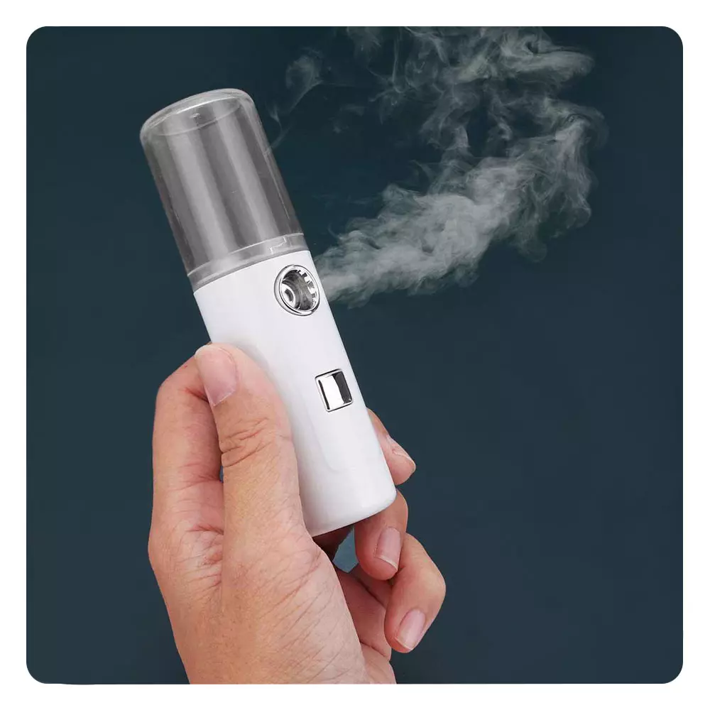 Использование - повернуть верхнюю крышку (резервуар) увлажнителя, перевернуть крышку (резервуар), заправить в резервуар 20 мл минеральной воды, плотно соединить с корпусом увлажнителя, нажать на кнопку включения и распылить на лицо, волосы, руки. Кожа будет моментально увлажнена. Помогает преобразить тусклую сухую кожу в здоровый и сияющий внешний вид.