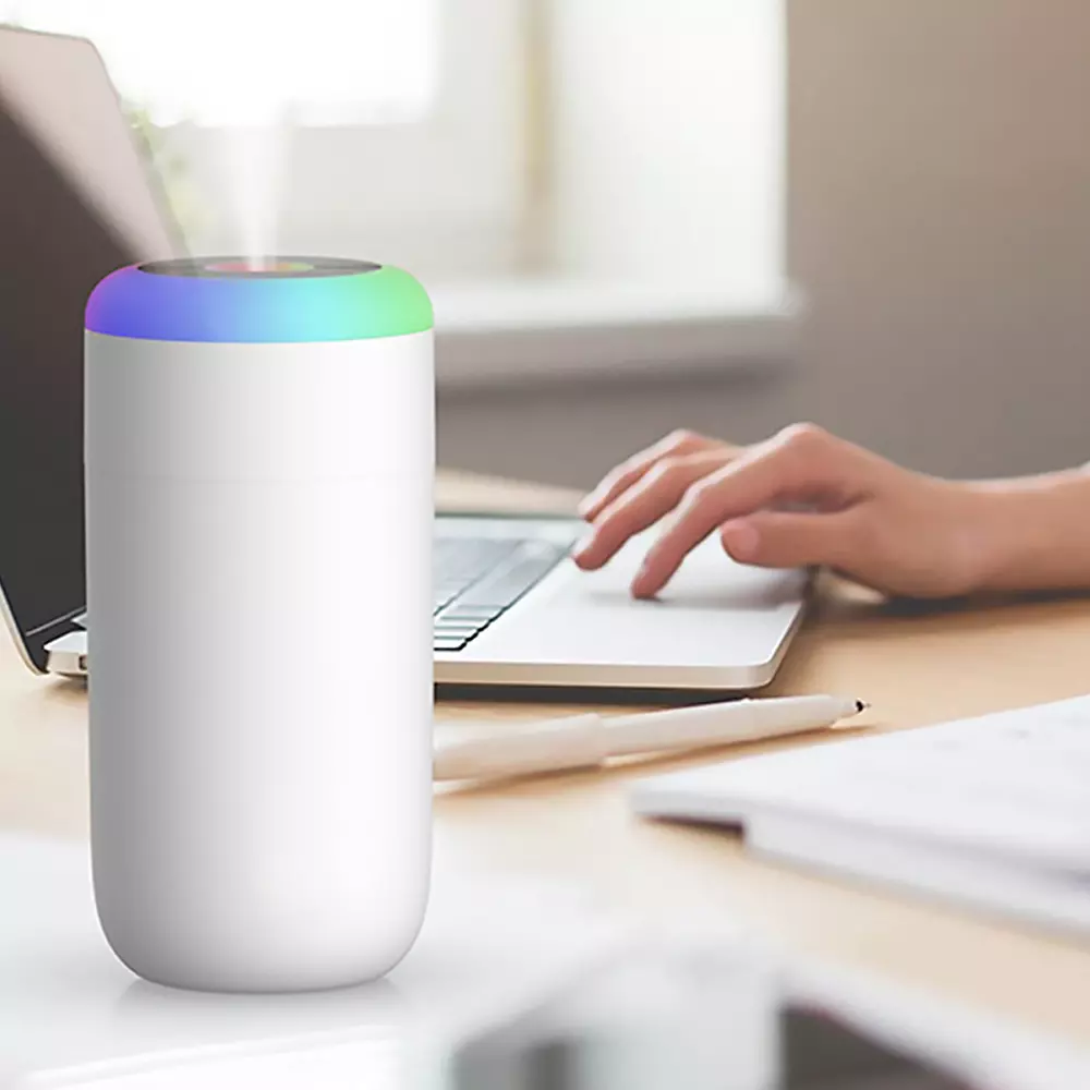Светодиодный USB увлажнитель Огайо - ультразвуковой увлажнитель воздуха. 7-ми цветовая динамическая радужная подсветка. Несколько капель арома масла в воду увлажнителя наполнит пространство ароматом и свежестью. Подходит для использования дома и в автомобиле. Резервуар - 350 мл.