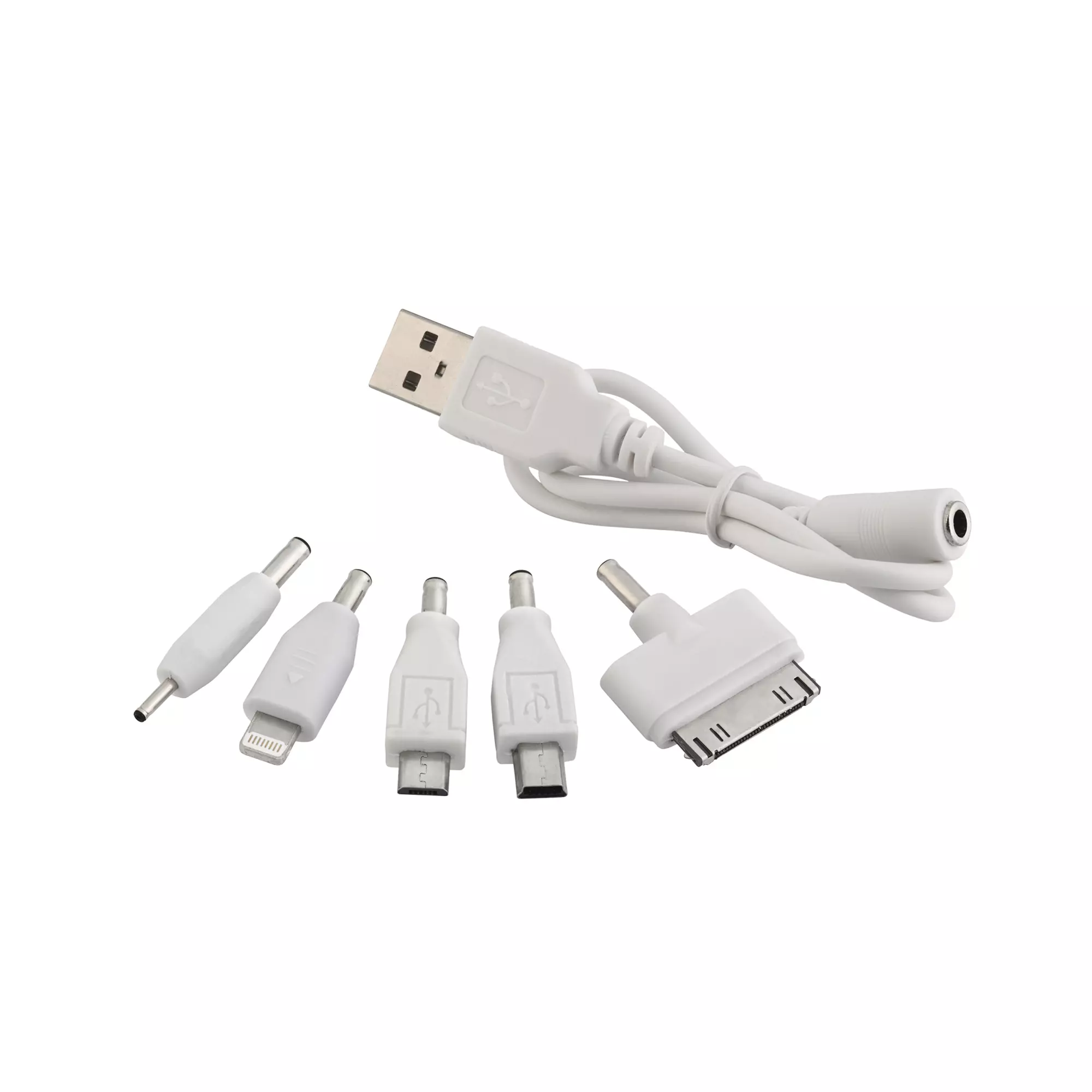 Зарядное устройство для подзарядки разнообразных портативных устройств (мобильных телефонов,фото/видеокамер, MP3-плееров, планшетов). Зеркальная гравировка логотипа! Перед началом эксплуатации рекомендуется полностью зарядить аккумулятор. Технические характеристики: тип элемента питания: литий-полимерный емкость: 4 000 mAh время полной зарядки батареи до 4 часов при токе 5V/1А индикатор зарядки срабатывает при подключении к сети 220В:красный - аккумулятор заряжается, синий - батарея полностью заряжена и готова к работе срок службы батареи: не менее 500 циклов заряда/разряда встроенная защита от глубокого разряда для сохранения емкости батареи функция умного старта/отключенияПросто соедините внешний аккумулятор и мобильное устройство через кабель,зарядка начнется автоматически. Когда внешнее устройство будет полность заряжено,аккумулятор переходит в режим ожидания для экономии заряда. фонарик включается/выключается нажатием на кнопку питания рабочая температура 0-45*С вес аккумулятора: 114 г. Параметры тока: micro USB вход (input): 5V/1.0А USB выход (output): 5V/1.0A В комплекте: кабель с 5-ю адаптерами - для HTC, Nokia, Iphone (4, 5), mini USB, micro USB инструкция коробка
