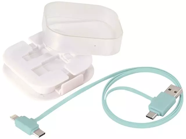 Кабель для зарядки 4-в-1 двух типов C: 1 USB типа A и 2-в-1 двухконтактных наконечников для устройств Apple iOS и Android. Используются как зарядка, так и передача данных. Чтобы зарядить устройства Apple, поместите кабель стороной, у которой нет контактов в устройстве, чтобы зарядить устройства Android, поместите кабель со стороны, в которой есть контакты в устройстве.