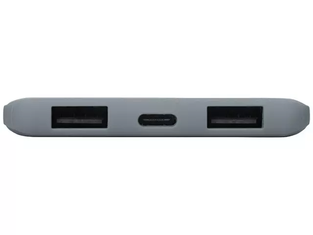 Универсальный внешний аккумулятор «Reserve» имеет супертонкий корпус (8мм) с мягким покрытием софт тач. Удобен и легок в использовании. Может заряжать 3 устройства одновременно благодаря двум зарядным USB портам и симметричному разъему USB-C. Сам повербанк можно зарядить как по micro USB разъему, так и по USB-C. Надежная литий-полимерная батарея класса А емкостью 5000 мАч. -Супертонкий корпус 8мм. -Покрытие софт-тач. -Зарядка 3 устройств одновременно (при наличии кабеля USB-C – USB-C). -Литий-полимерная батарея класса А емкостью 5000 мАч.