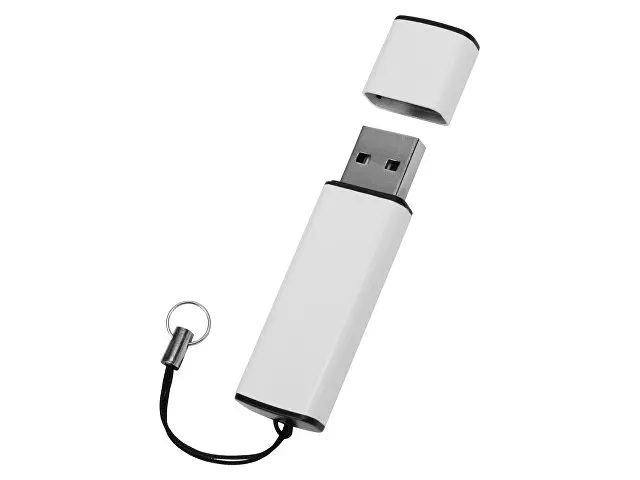 Металлическая флешка в окрашенном корпусе с колпачком. Имеет крепление для переноски.