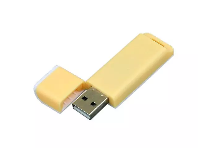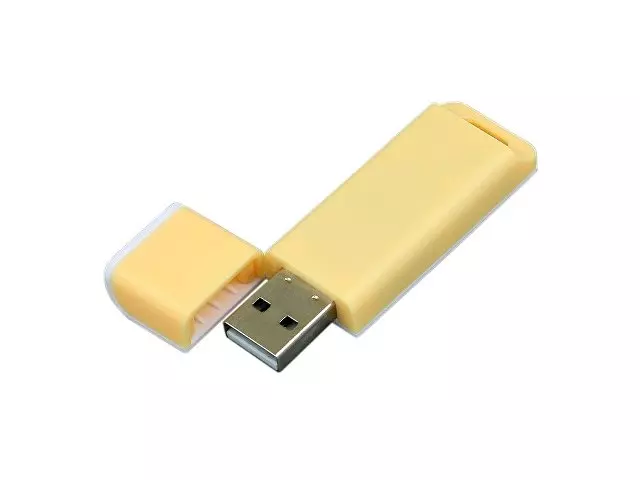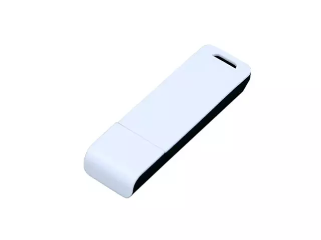 Флеш-накопитель прямоугольной формы, оригинальный дизайн, двухцветный корпус, объем памяти 64 Гб. Пластиковый корпус. Cкорость чтения 18 Мб/с. Скорость записи 8 Мб/с.