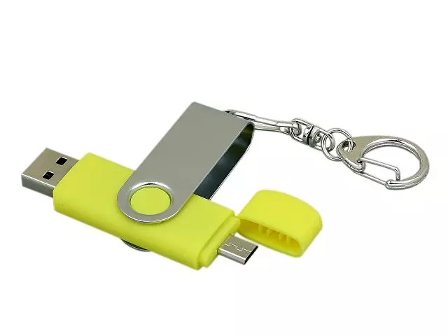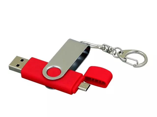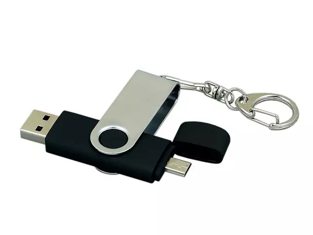 Флеш-накопитель поворотный механизм, c дополнительным разъемом Micro USB с одноцветным металлическим клипом, объем памяти 16 Гб. Пластиковый корпус. Скорость чтения 18 Мб/с. Скорость записи 8 Мб/с.