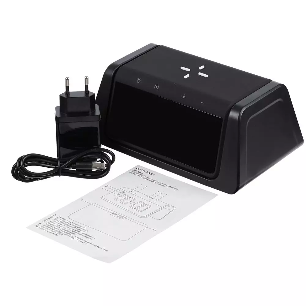 UV Depot — многофункциональное устройство, которое сочетает в себе функции настольных часов, будильника, станции для беспроводной и проводной зарядки устройств и стерилизатора.Зарядная станция совместима со всеми мобильными устройствами, поддерживающими технологию беспроводной зарядки Qi. Зарядка начнется автоматически при размещении смартфона на индукционной площадке. USB-порт для проводной зарядки расположен на задней стенке устройства.Стерилизатор может использоваться для дезинфекции смартфонов, ключей, монет, банкнот, ювелирных изделий, косметики и прочих мелких бытовых предметов из любых материалов.Часы позволяют следить за временем, а будильник — настроить время пробуждения или напоминания о необходимости завершить задачу. Беспроводная зарядка стандарта QiВход: 5 В, 2 A; 9 В, 1,67 AВыход беспроводной зарядки: 5 В, 2 AВыход USB: 5 В, 1 А (макс)Настольные часыБудильникСтерилизация ультрафиолетомДлина волны УФ-излучения: 275–395 нмМощность УФ-излучения: 0,75 ВтРаботает при питании от сетиАдаптер питания и кабель в комплектеПоставляется в индивидуальной упаковке.Внимание! Не все модели смартфонов поддерживают функцию беспроводной зарядки.