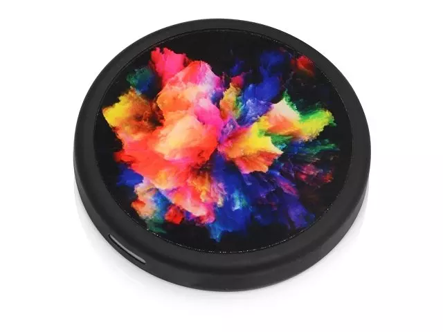 Благодаря миниатюрному размеру устройства и идеальной форме круга, вы не сразу угадаете его назначение. Этот предмет создан для тех, кто предпочитает гармонично встраивать технологии в ежедневную жизнь, деликатно скрывая их под маской обычных вещей. Главная функция устройства — беспроводная зарядка — реализуется качественно и бесперебойно. В комплекте с изделием в разобранном виде поставляется круглое закаленное стекло, на котором можно сделать красочное нанесение любого изображения. После запечатки стекло легко крепится на корпус устройства. Основные характеристики: - Мощность 5 Вт. - Суперкомпактность. - Soft-touch покрытие. - Минималистичный дизайн.