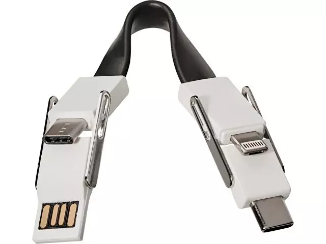 Кабель "4 в 1" позволяет заряжать любые устройства. Он оснащен разъемами USB Type A, Type-C и наконечником "2 в 1", совместимым как с устройствами iOS, так и с устройствами Android. Может использоваться как для зарядки, так и для передачи данных. Кабель оснащен брелоком и магнитами, обеспечивающими удобную переноску. Пластик ABS.