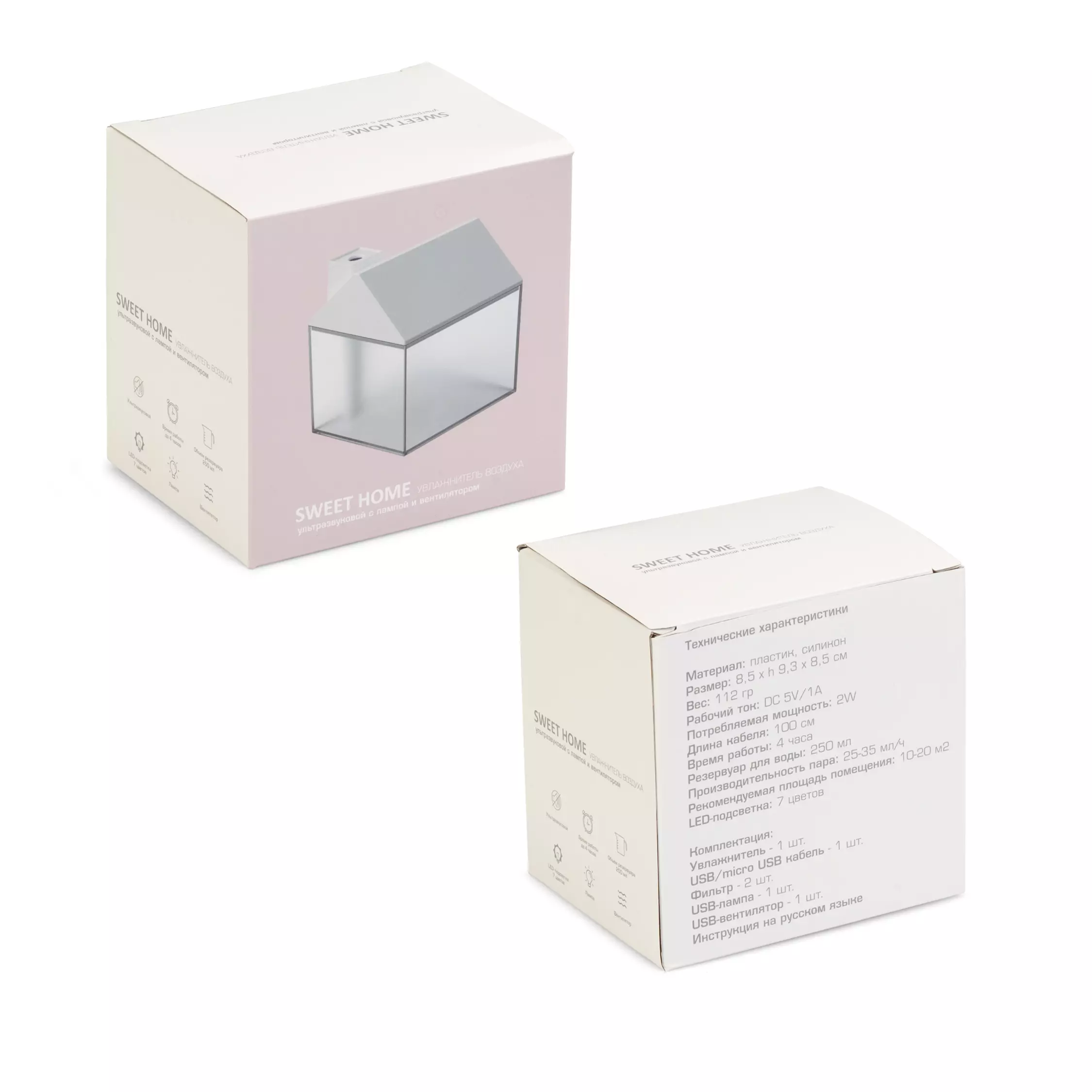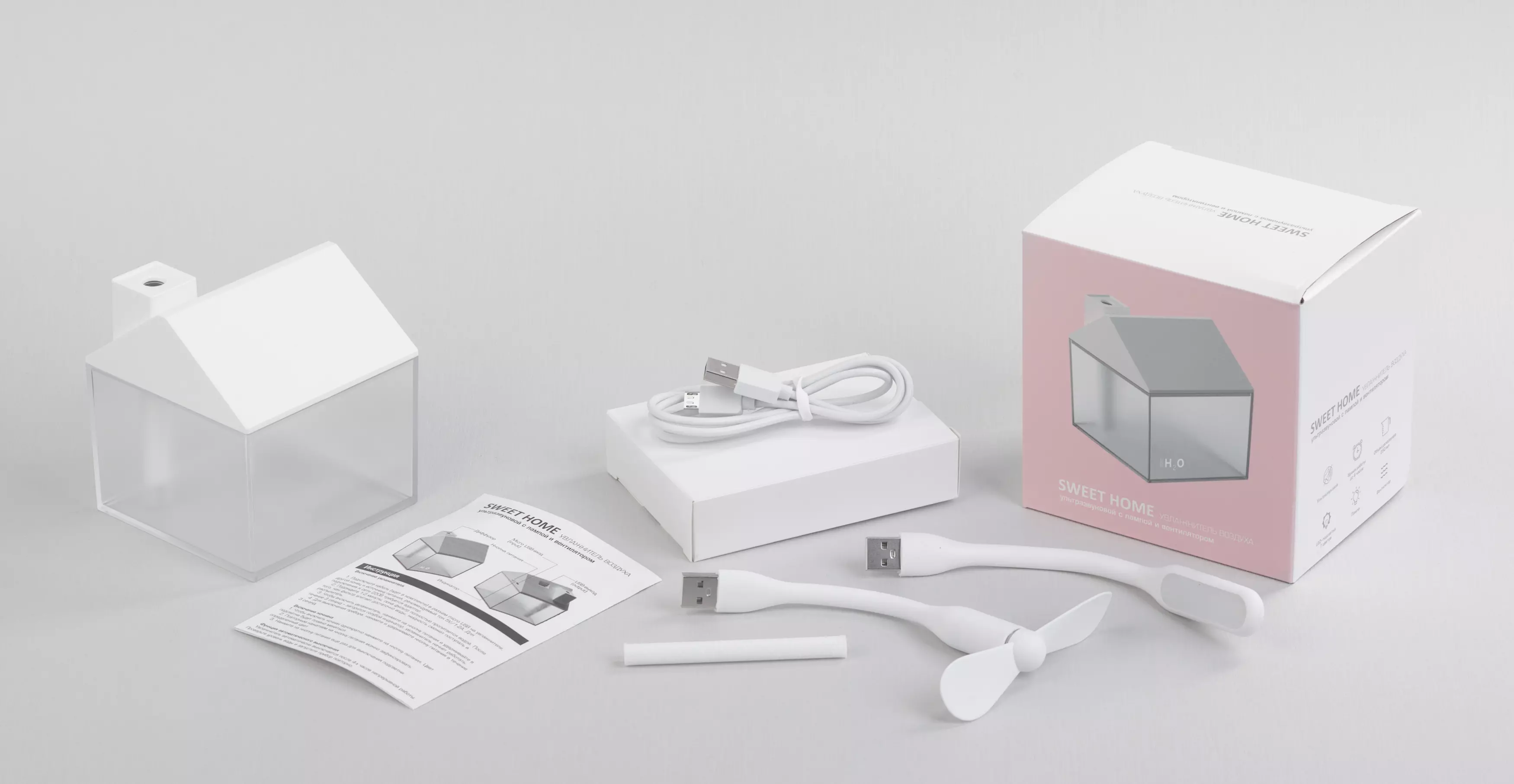 Увлажнитель воздуха сегодня является популярным гаджетом для дома и офиса. С его помощью легко восполнить недостаток влаги и создать более комфортные условия в помещении. Sweet Home – это компактный полезный помощник в создании уюта и поддержания уровня влажности в комнате. Увлажнитель представлен в оригинальном исполнении – в форме маленького «домика» Объём резервуара -300 мл. Простая конструкция позволяет легко заливать/сливать воду. Работает в нескольких режимах, один из которых с цветовой индикацией. К нему можно подключить дополнительные аксессуары через USB-разъём, которые выполняют полезные функции, и добавляют особую атмосферу. Установите к нему лампу – в таком случае он будет служить источником света. Можно установить вместо лампы вентилятор – и тогда влажный пар будет рассеиваться в заданном направлении с лёгкой прохладой. Настольный увлажнитель подключается через USB кабель. Рекомендуемая площадь помещения 10-20 м2. Увлажнитель воздуха "Sweet home" Материал: пластик, силикон Размер: 8,5 х h 9,3 х 8,5 см Длина кабеля: 100 см Объем резервуара: 300 мл (МАХ) Вес: 112 гр Рабочий ток: DC 5V/1A Потребляемая мощность: 2W Производительность пара: 25-35 мл/ч Рекомендуемая площадь помещения: 10-20 м2 Время непрерывной работы: 4 часа LED-подсветка: 7 цветов Комплектация: Увлажнитель - 1 шт. USB кабель - 1 шт. Фильтр - 2 шт. USB-лампа - 1 шт. USB-вентилятор - 1 шт. Инструкция на русском языке