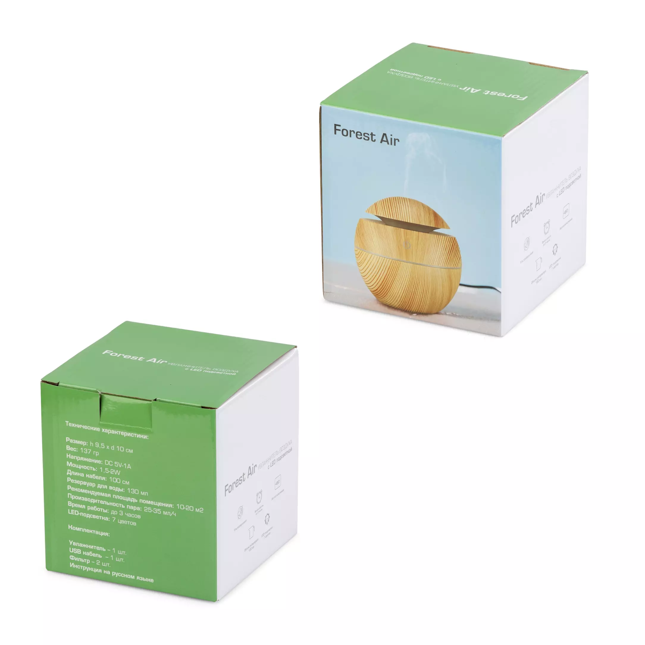 Увлажнитель для воздуха уже стал незаменимым гаджетом для создания и поддержания оптимального микроклимата в помещениях. Компактный увлажнитель Forest air изготовлен из качественного пластика с имитацией дерева. Лаконичный экодизайн подчёркивает встроенная подсветка. Включение и сам процесс работы настольного увлажнителя максимально просто регулируется сенсорной кнопкой. Forest air способен увлажнять воздух в комнате до 20 м2. Этот стильный помощник станет отличным решением для поддержания комфортной среды в комнате, и за вашим рабочим столом. Увлажнитель воздуха "Forest air" Материал: пластик Размер: h 10 х d 9,5 см Длина кабеля: 100 см Объем резервуара: 130 мл Вес: 137 гр Рабочий ток: DC 5V/1A Потребляемая мощность: 1,5-2 W Производительность пара: 25-35 мл/ч Рекомендуемая площадь помещения: 10-20 м2 Время непрерывной работы: до 6 часов LED-подсветка: 7 цветов Комплектация: Увлажнитель - 1 шт. USB/micro USB кабель - 1 шт. Фильтр - 2 шт. Инструкция на русском языке