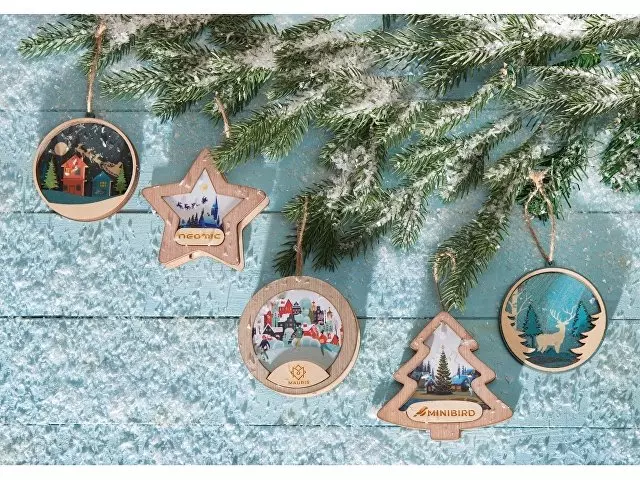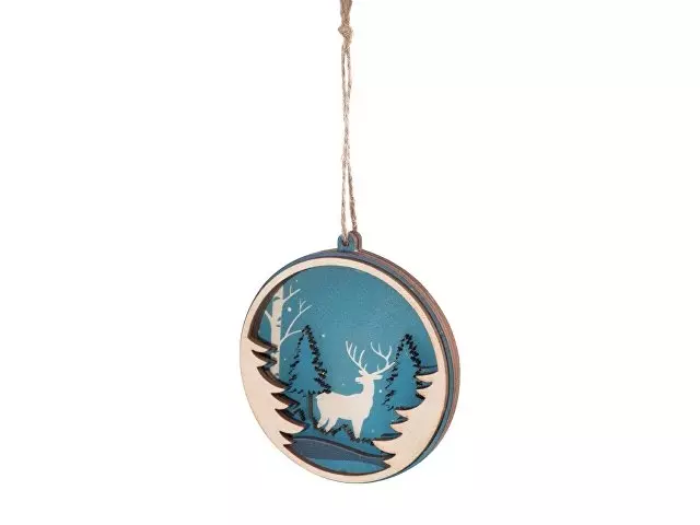 Игрушка выполнена из трех слоев фанеры и прекрасно подходит для того, чтобы украсить новогодний набор, подарок либо стать самостоятельным небольшим памятным презентом. Игрушка имеет свой рельеф: приглядитесь, и вы заметите, что фигуры пейзажа находятся на разных слоях фанеры, что придает изображению объемность.