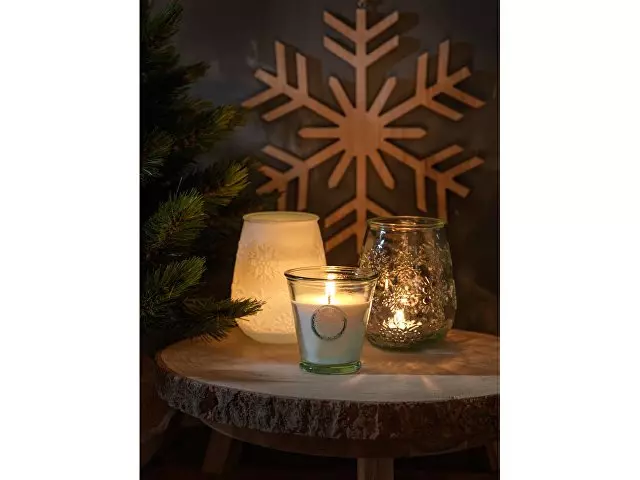 Подставка для чайной свечи из переработанного стекла с эффектом падающих снежинок. Изготовлен из 1 стеклянной бутылки. На изготовление переработанного стекла затрачивается меньше энергии, сырья и добавок, чем на изготовление традиционного стекла. Чайная свеча не входит в комплект. Переработанное стекло.
