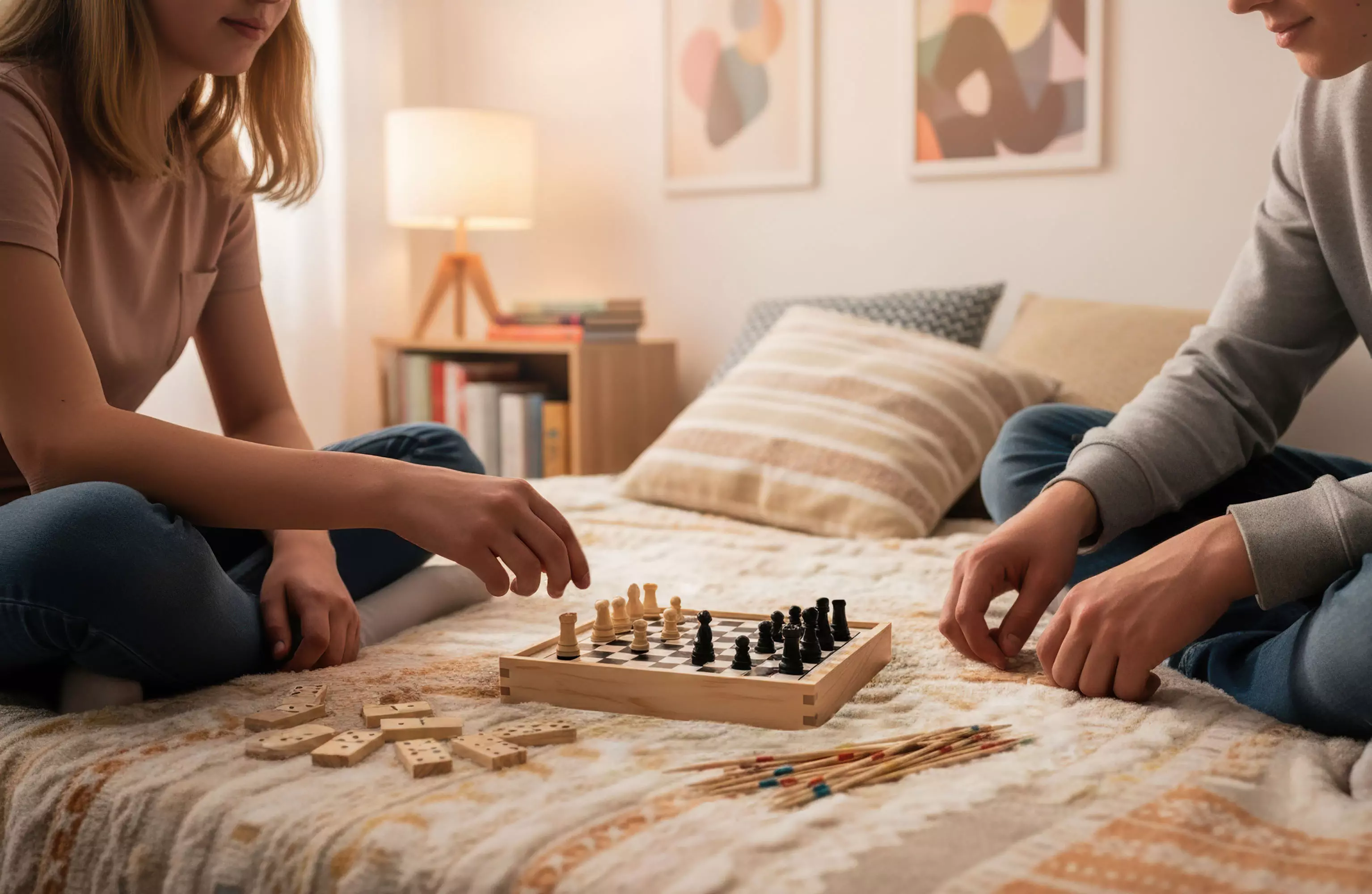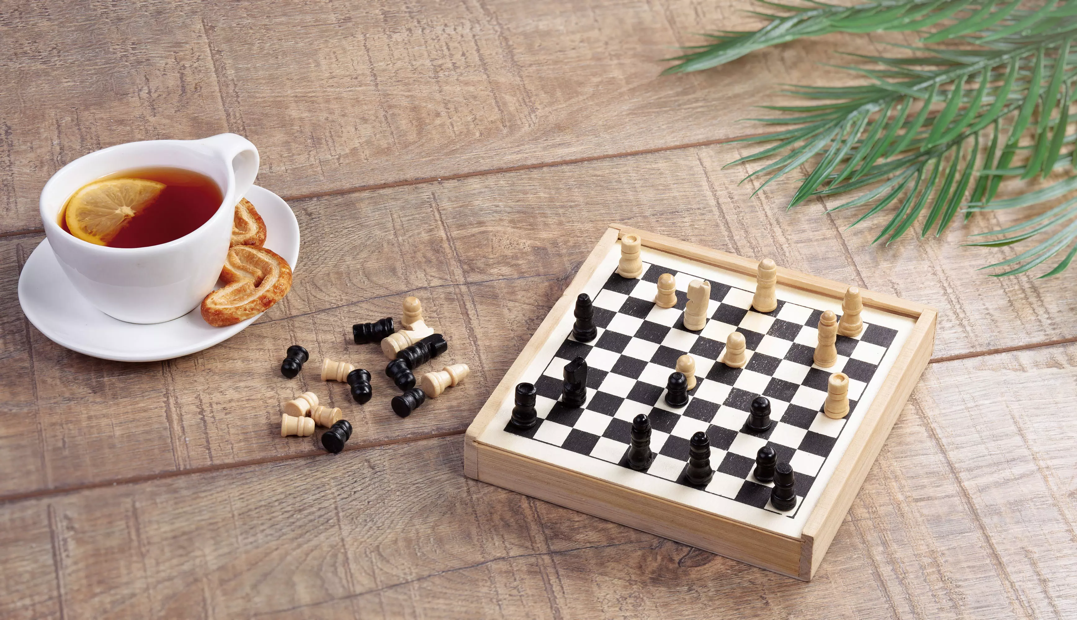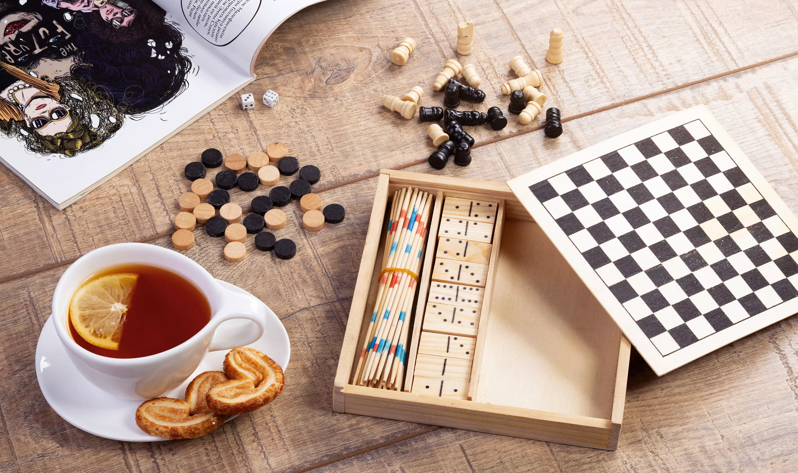 "Joy" - компактный набор 4в1, который станет отличным компаньоном для интеллектуального отдыха! В удобном футляре вы найдете сразу четыре популярные настольные игры: Шахматы: Классическая игра для двух игроков, требующая стратегического мышления и тактического планирования. Шашки: Простая в освоении, но увлекательная игра для двух игроков, где нужно перехитрить соперника и захватить все его шашки. Домино: Веселая игра для компании до 4 человек, где нужно выстраивать цепочки из костяшек, чтобы первым избавиться от всех своих. Микадо: Игра на ловкость и внимательность для компании до 8 человек, где нужно аккуратно вытаскивать палочки, не задев остальные. Игровое поле для шахмат и шашек нанесено прямо на выдвижную крышку футляра, обратная сторона остается чистой. "Joy" - время играть!