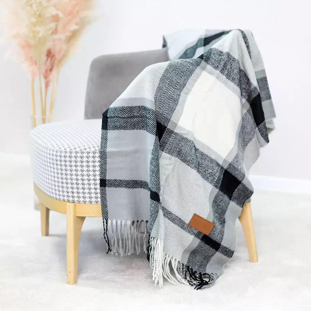Плед GLAMA изготовлен из высококачественной акриловой пряжи, что позовляет добиться мягкости и тепла как от натуральной шерсти. Благодаря составу плед легкий, хорошо сохраняет теплоизолирующие свойства и надолго радует внешним видом. Также гипоаллергенен, не накапливает статическое электричество и легко стирается. Плед имеет классический узор "scotch", с бахромой по краям. Для нанесения логотипа предусмотрена нашивка из кожзама. Плед упакован в пластиковый пакет, сложен в виде рулона с текстильным держателем.