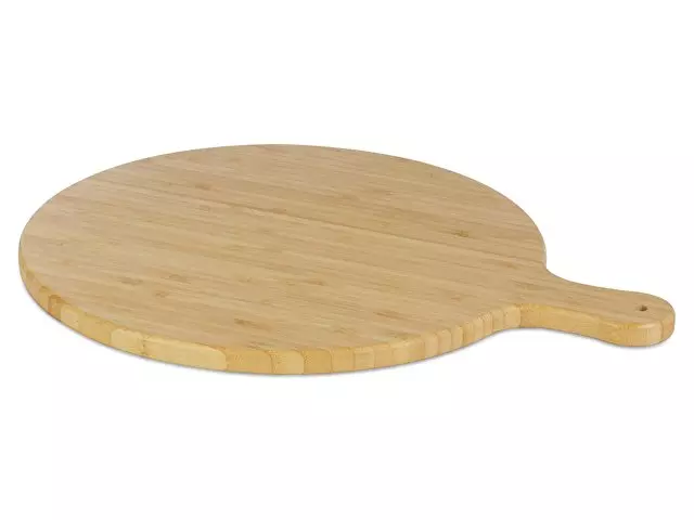 Разделочная доска Delys изготовлена из бамбука и идеально подходит для частных лиц и предприятий, которые предпочитают более экологичные товары. Диаметр доски: 30,5 см. Длина ручки: 8 см. Толщина доски: 1,4 см. Не подходит для микроволновой печи или посудомоечной машины.