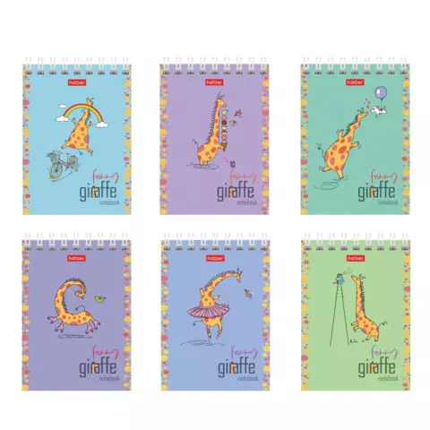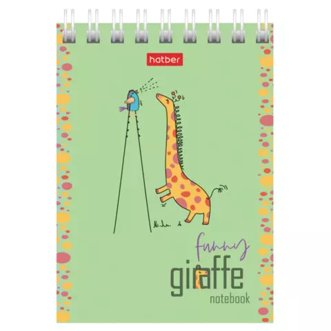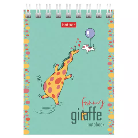 Блокнот МАЛЫЙ ФОРМАТ А7, 60 л., гребень, картон, клетка, HATBER, "Веселый жираф", 081165, 60Б7В1гр